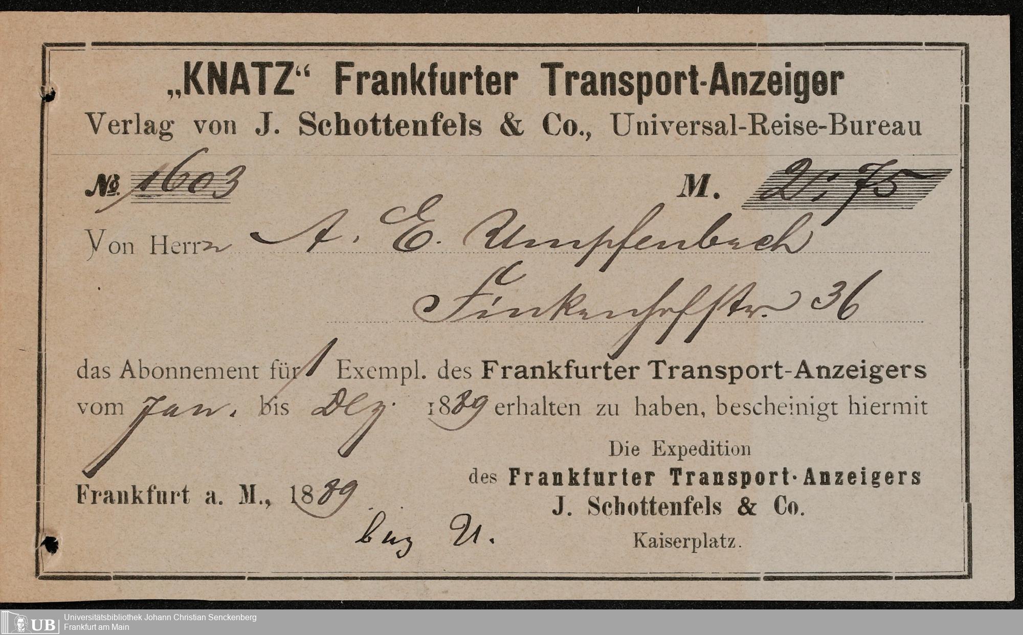 B 5 Dr. Senckenbergische Stiftung, 107 - Testamentsakten Umpfenbach