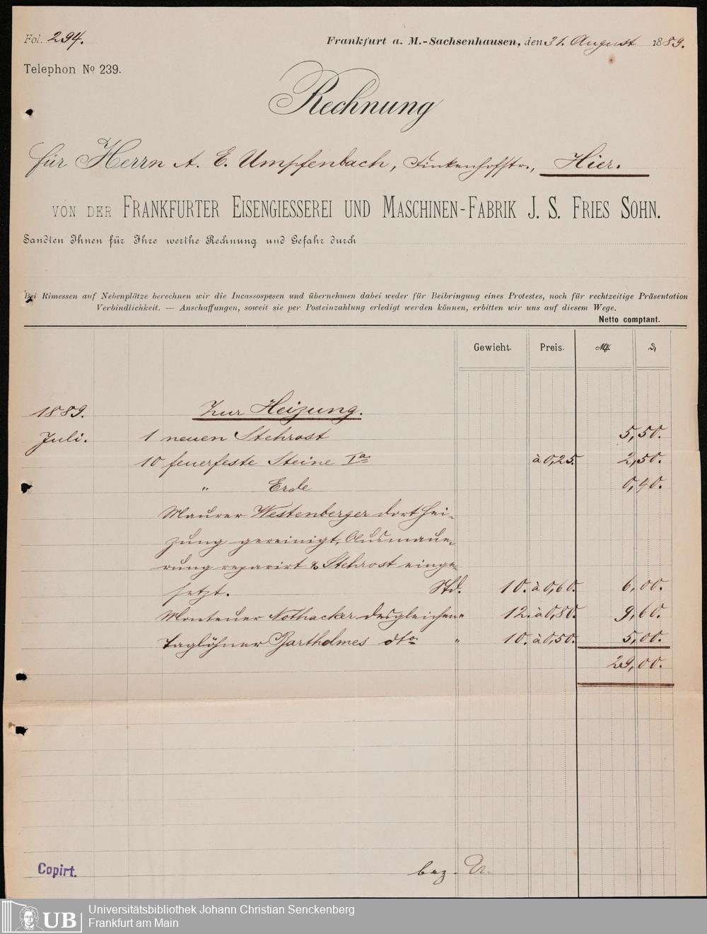 B 5 Dr. Senckenbergische Stiftung, 107 - Testamentsakten Umpfenbach