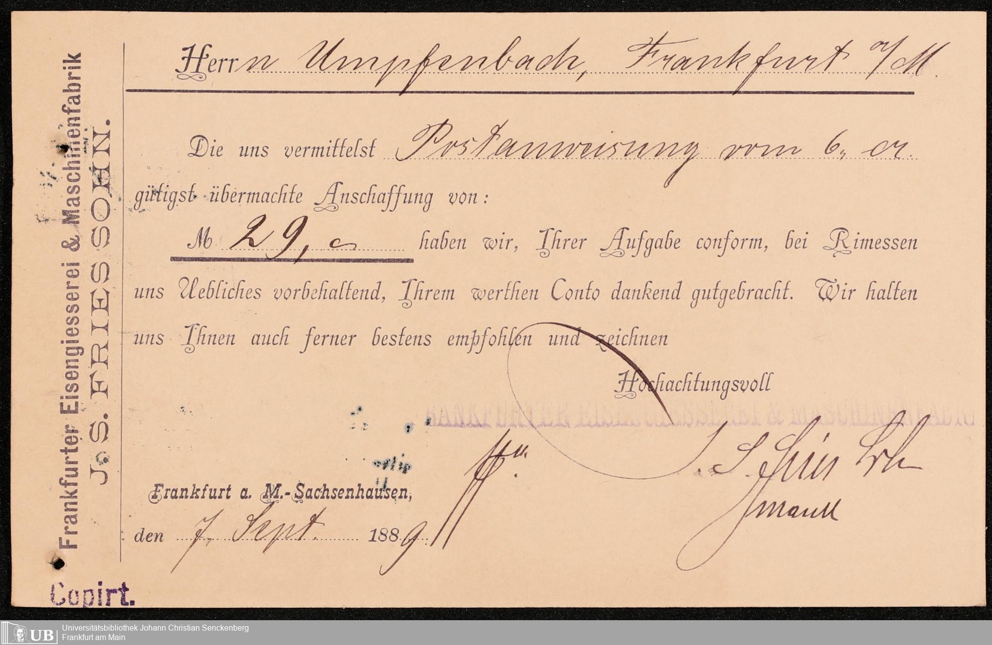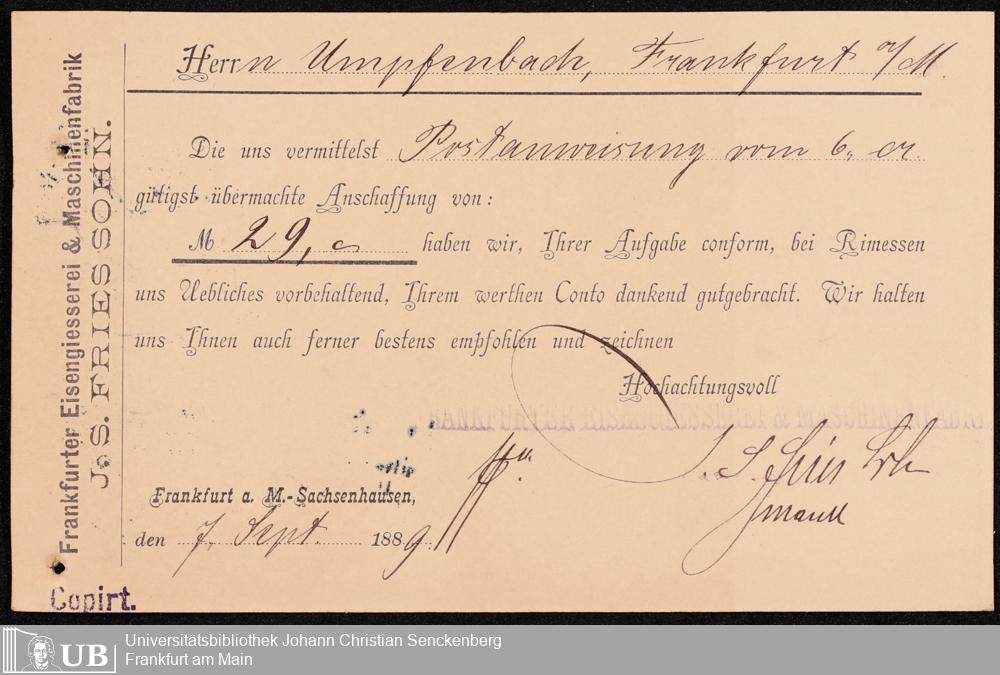 B 5 Dr. Senckenbergische Stiftung, 107 - Testamentsakten Umpfenbach