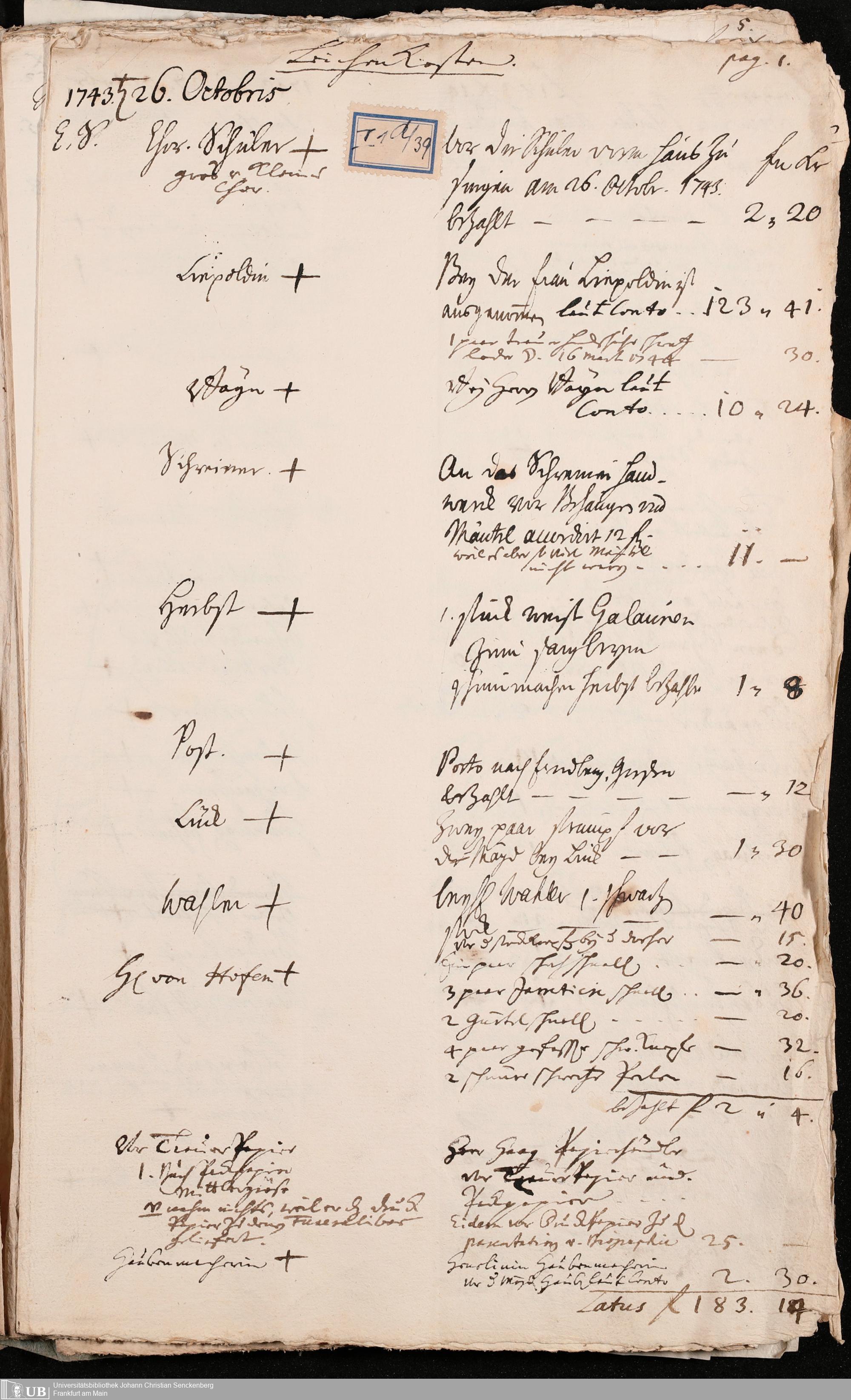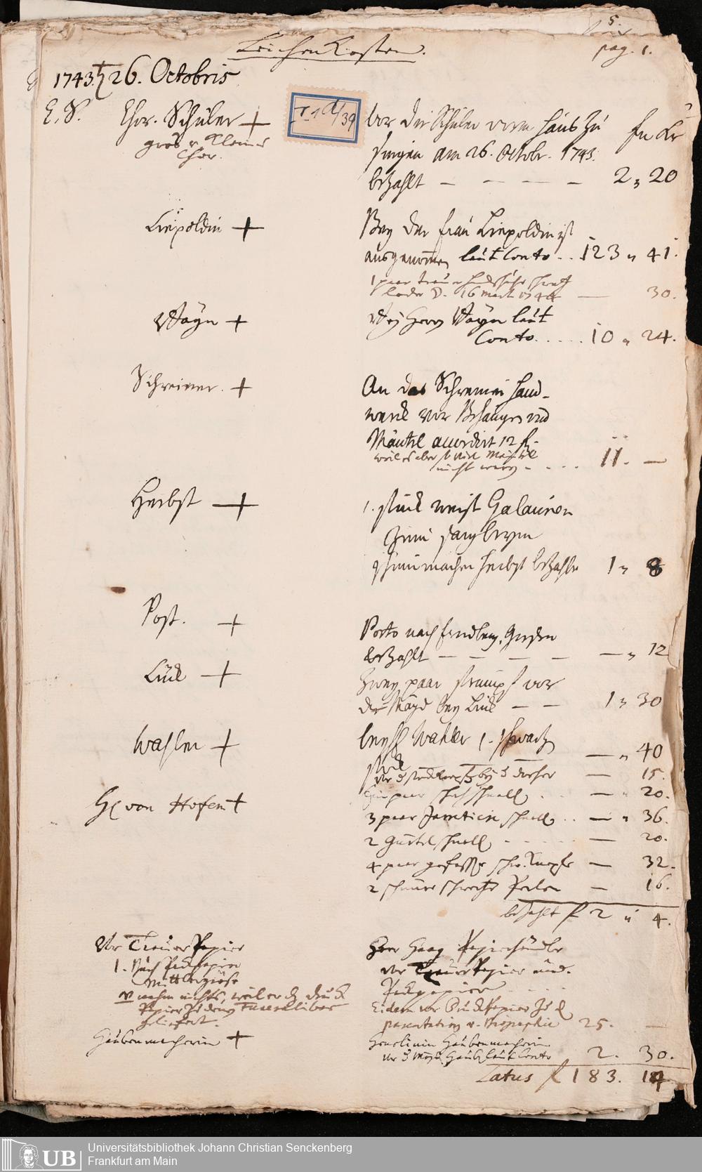 Na 31 Nachlass Johann Christian Senckenberg, 100 - Quittungen, Aufzeichnungen und Entwürfe zu den Beerdigungen der Ehefrauen Senckenbergs