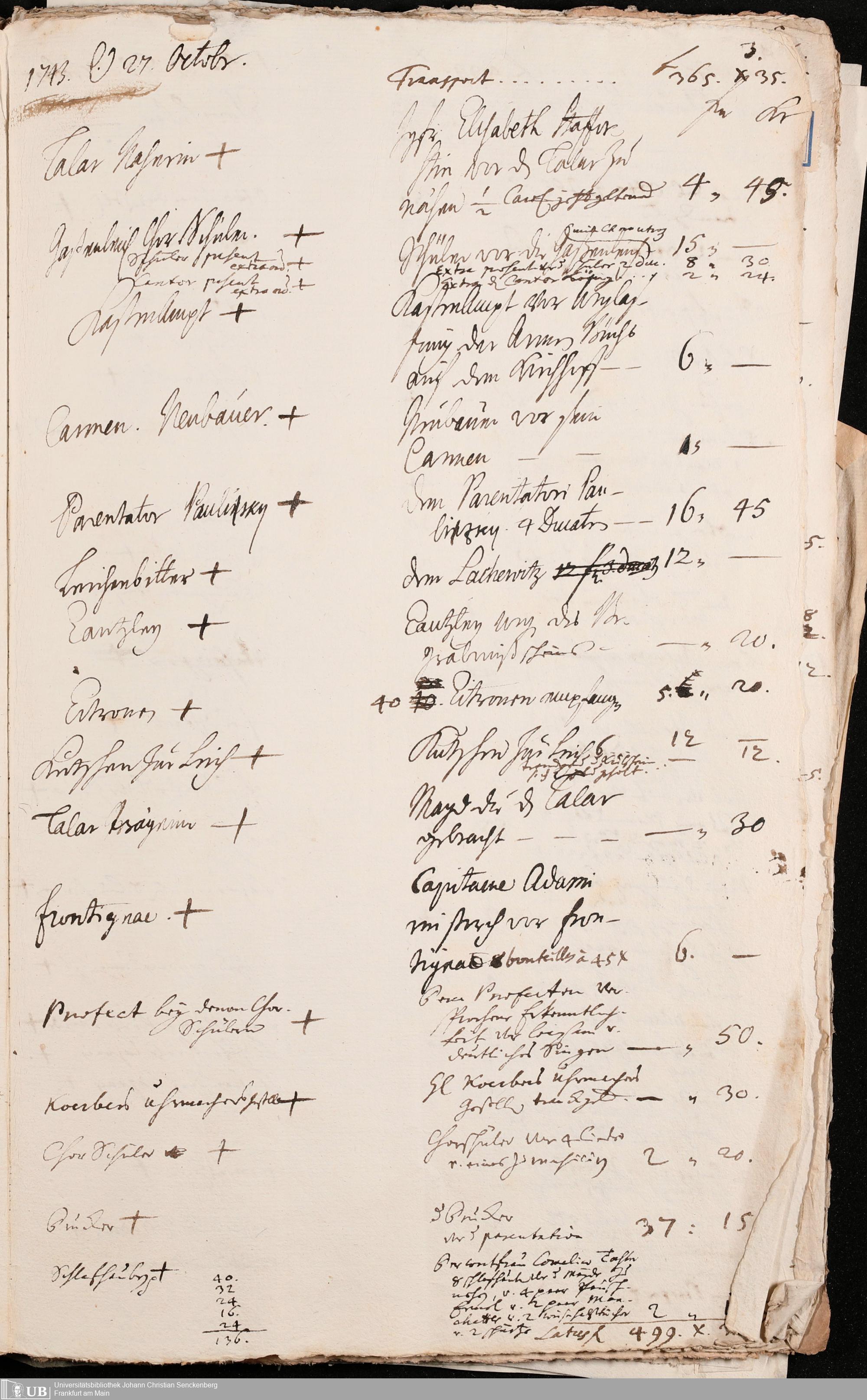 Na 31 Nachlass Johann Christian Senckenberg, 100 - Quittungen, Aufzeichnungen und Entwürfe zu den Beerdigungen der Ehefrauen Senckenbergs