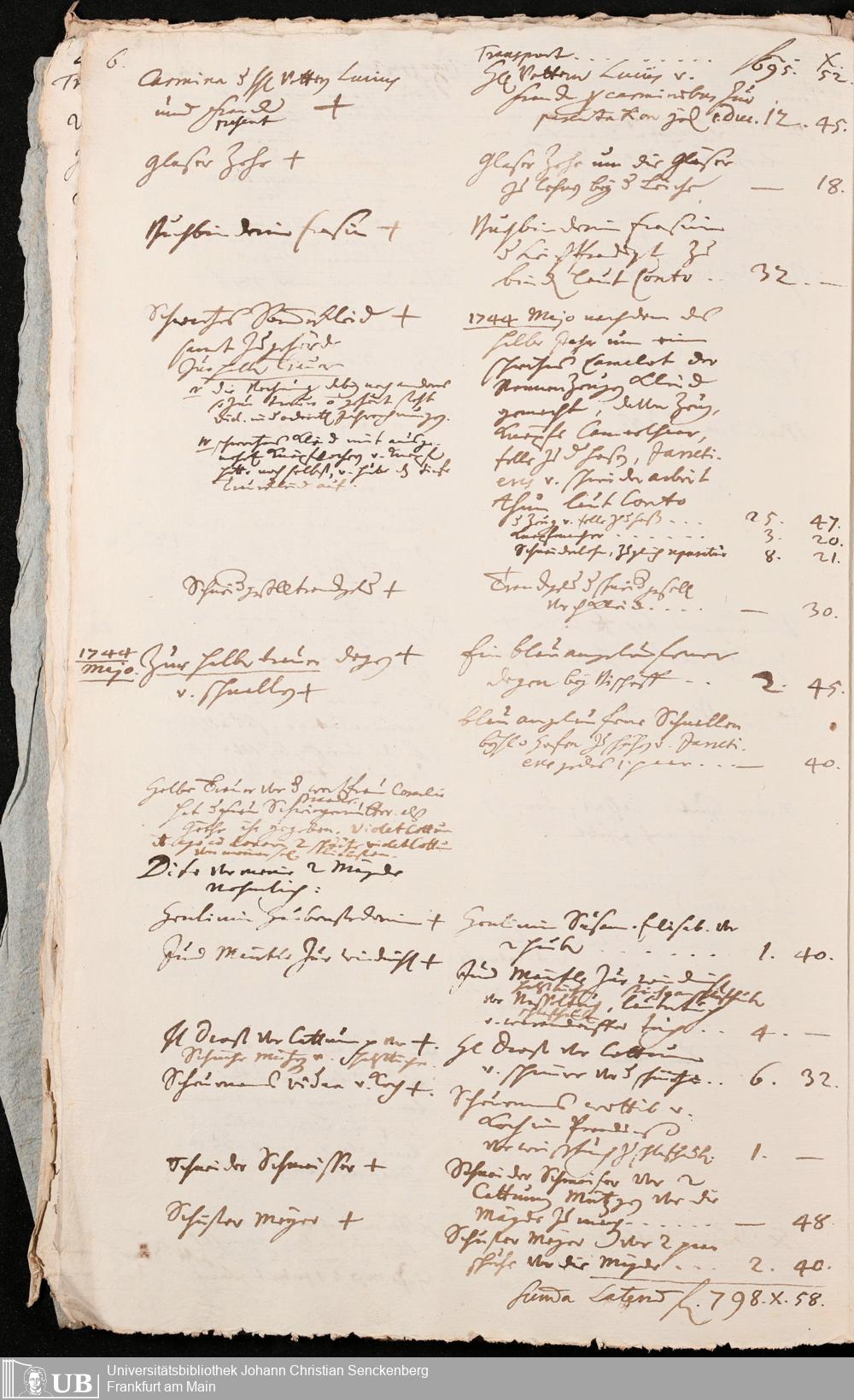 Na 31 Nachlass Johann Christian Senckenberg, 100 - Quittungen, Aufzeichnungen und Entwürfe zu den Beerdigungen der Ehefrauen Senckenbergs