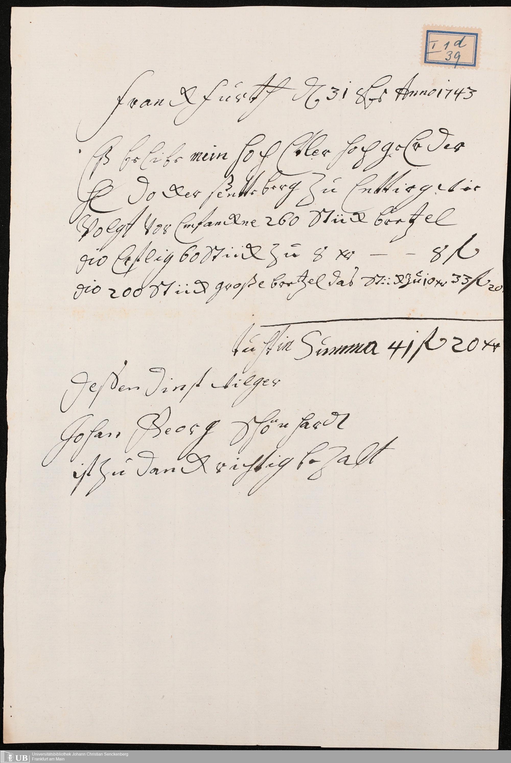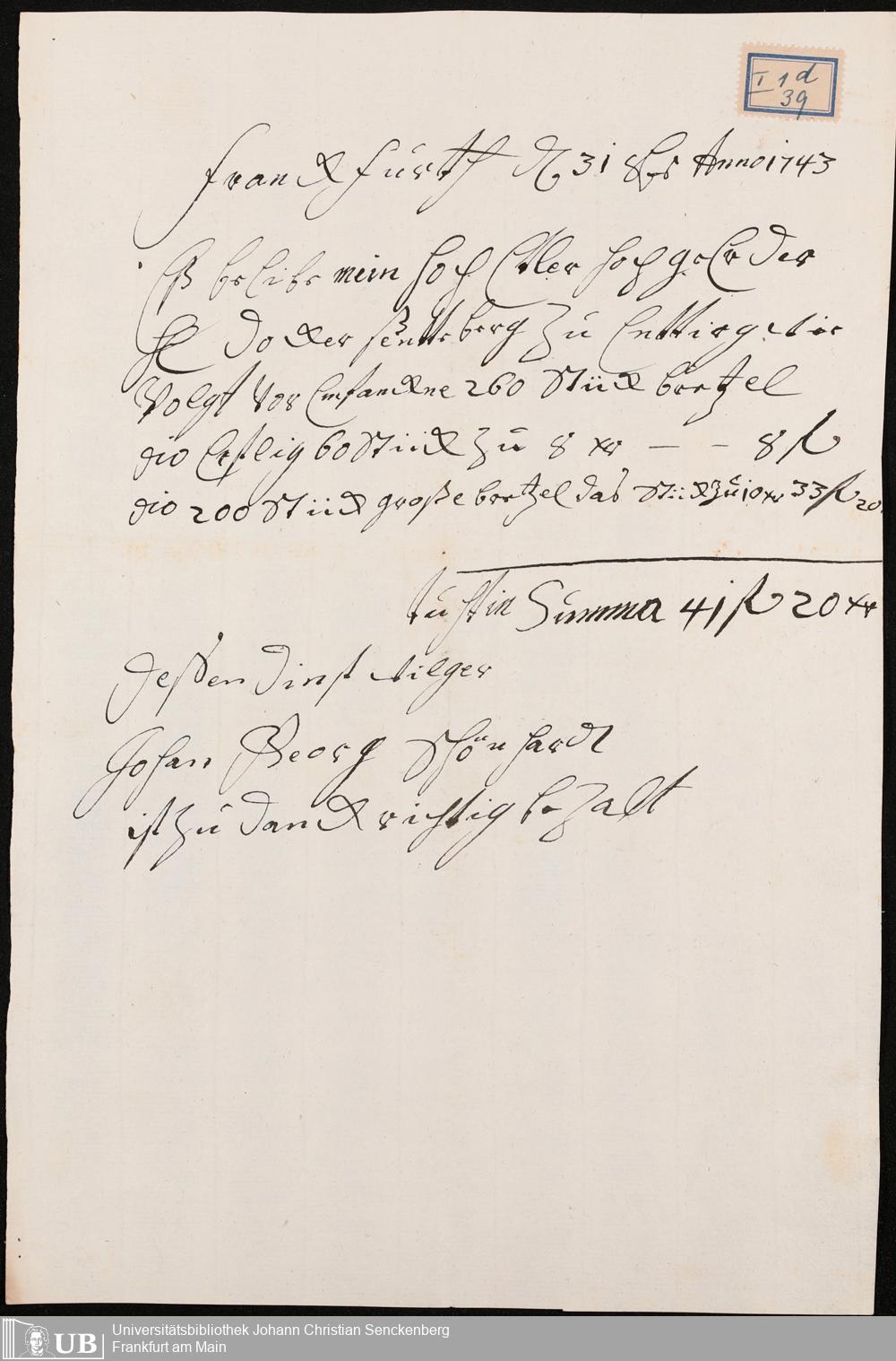 Na 31 Nachlass Johann Christian Senckenberg, 100 - Quittungen, Aufzeichnungen und Entwürfe zu den Beerdigungen der Ehefrauen Senckenbergs