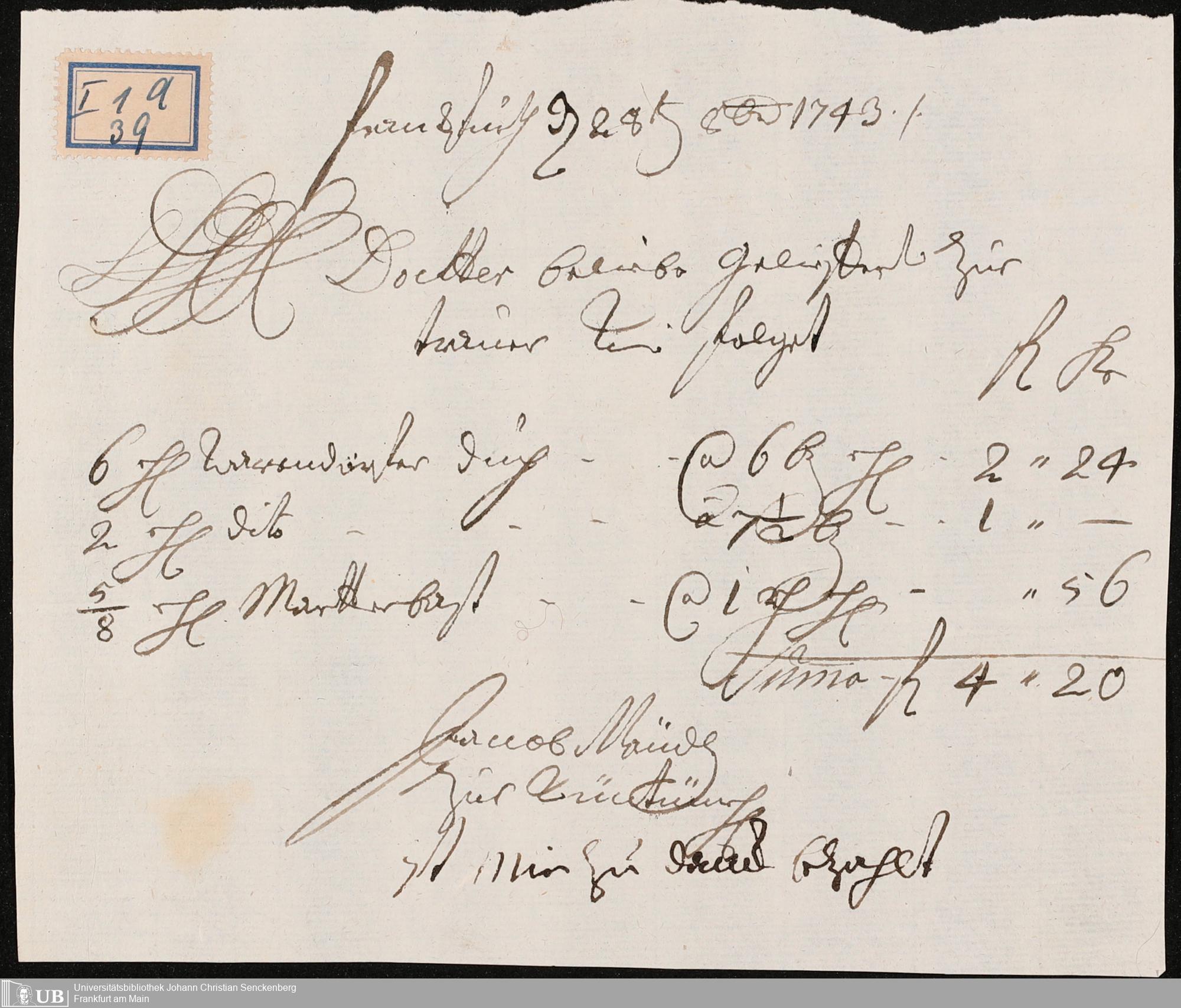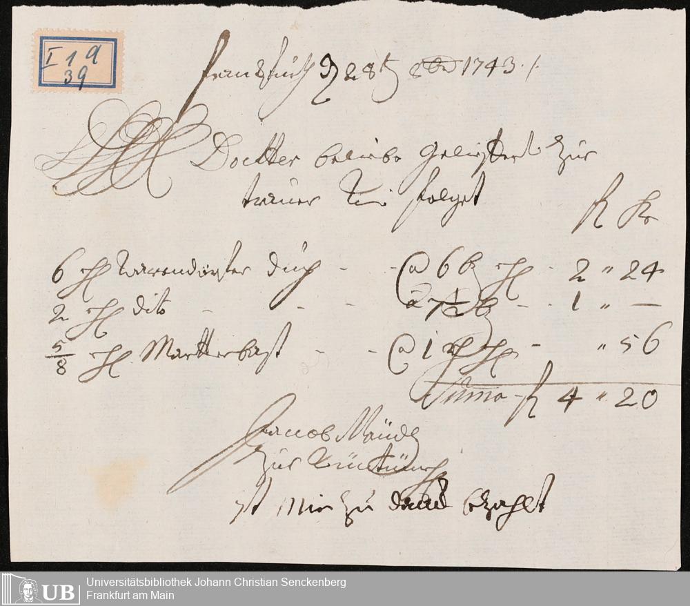 Na 31 Nachlass Johann Christian Senckenberg, 100 - Quittungen, Aufzeichnungen und Entwürfe zu den Beerdigungen der Ehefrauen Senckenbergs