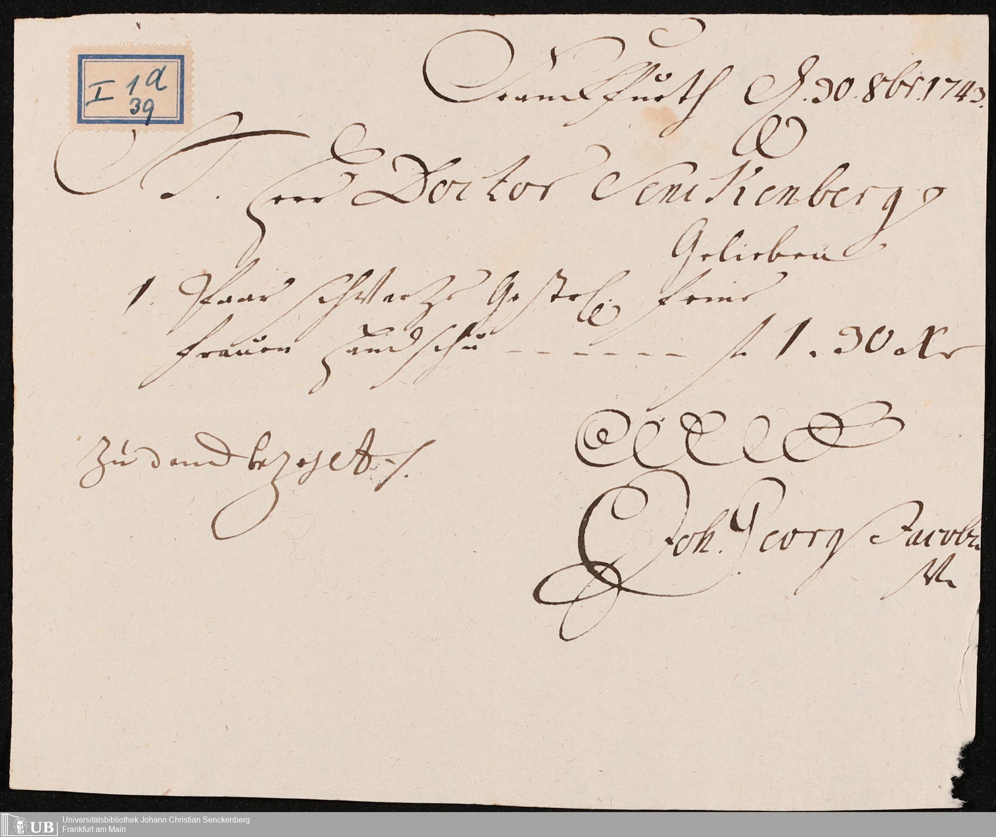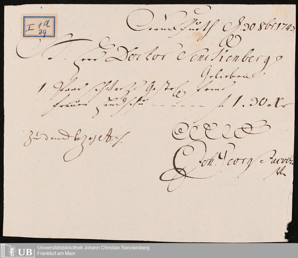 Na 31 Nachlass Johann Christian Senckenberg, 100 - Quittungen, Aufzeichnungen und Entwürfe zu den Beerdigungen der Ehefrauen Senckenbergs