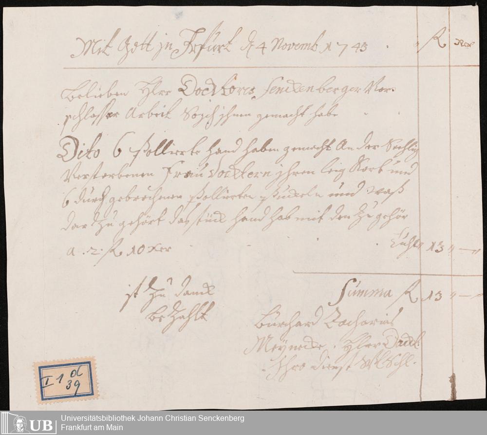 Nachlass Johann Christian Senckenberg
