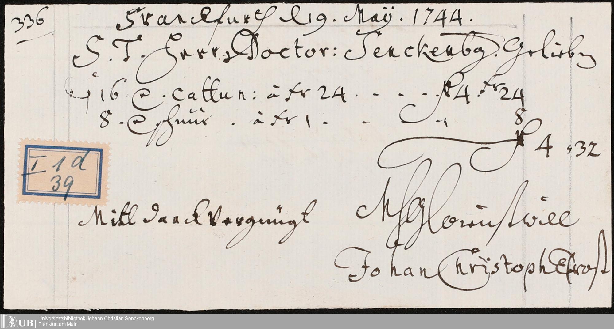 Nachlass Johann Christian Senckenberg