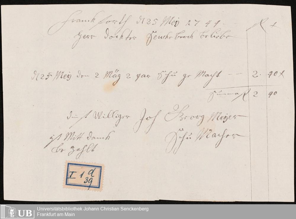 Na 31 Nachlass Johann Christian Senckenberg, 100 - Quittungen, Aufzeichnungen und Entwürfe zu den Beerdigungen der Ehefrauen Senckenbergs