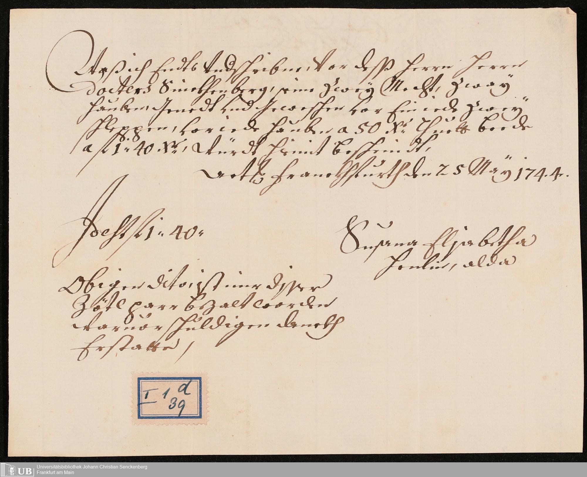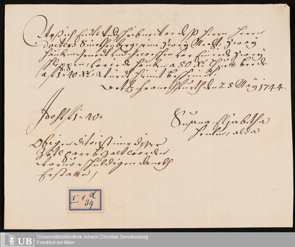 Na 31 Nachlass Johann Christian Senckenberg, 100 - Quittungen, Aufzeichnungen und Entwürfe zu den Beerdigungen der Ehefrauen Senckenbergs