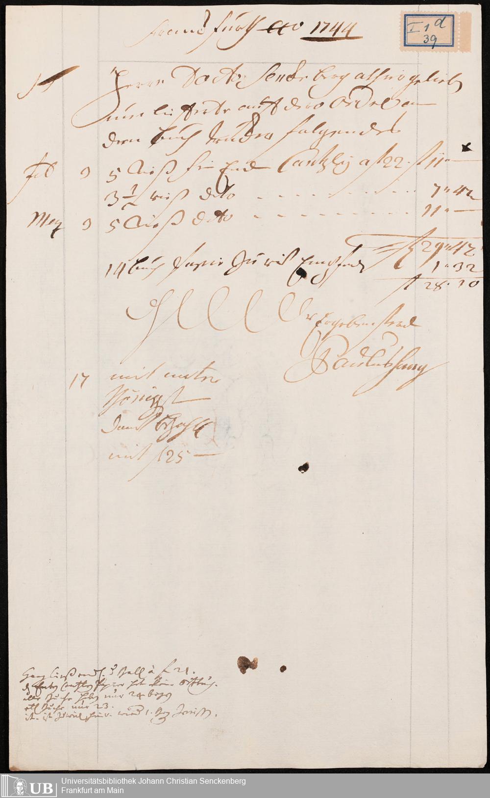 Na 31 Nachlass Johann Christian Senckenberg, 100 - Quittungen, Aufzeichnungen und Entwürfe zu den Beerdigungen der Ehefrauen Senckenbergs