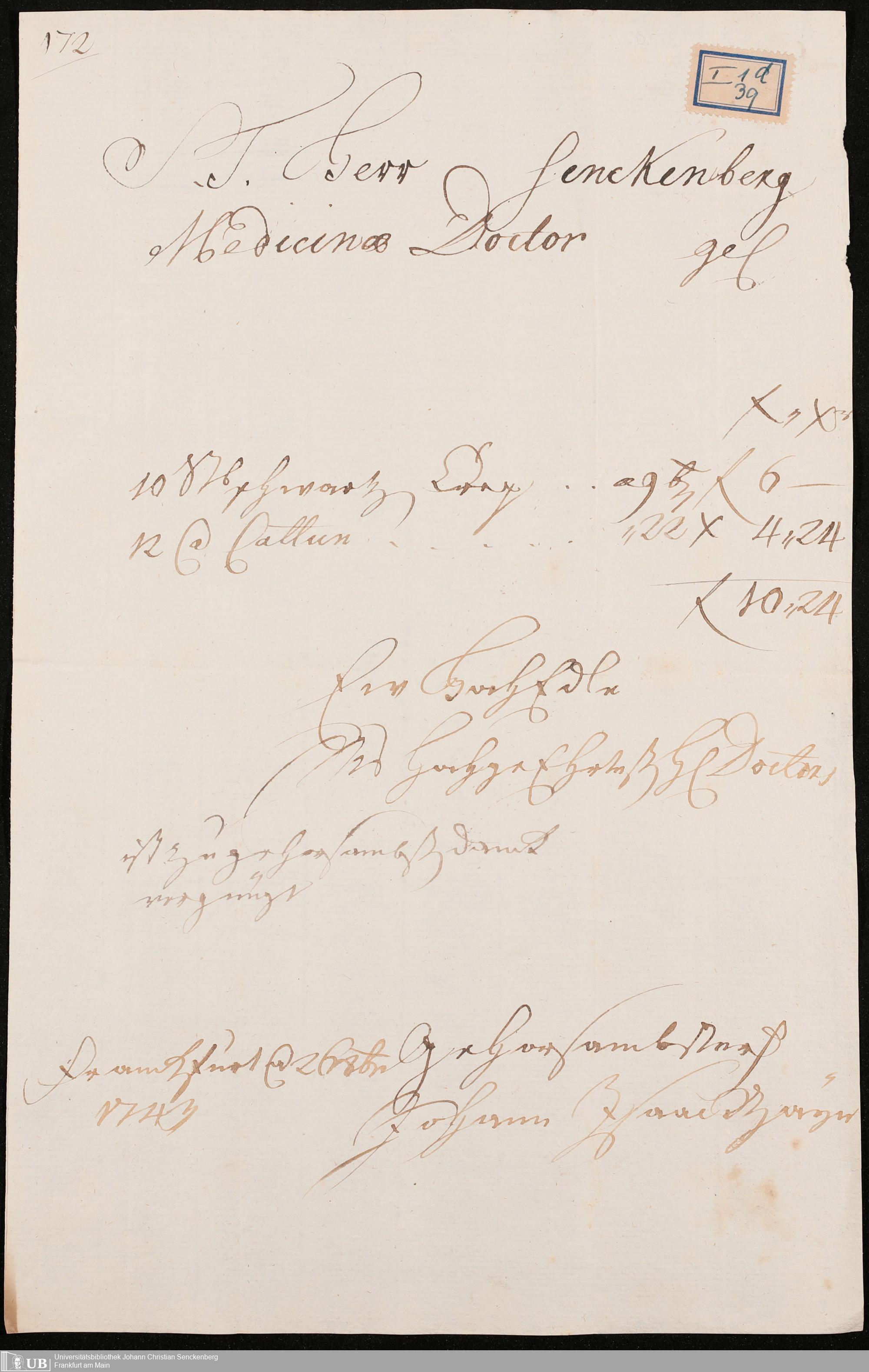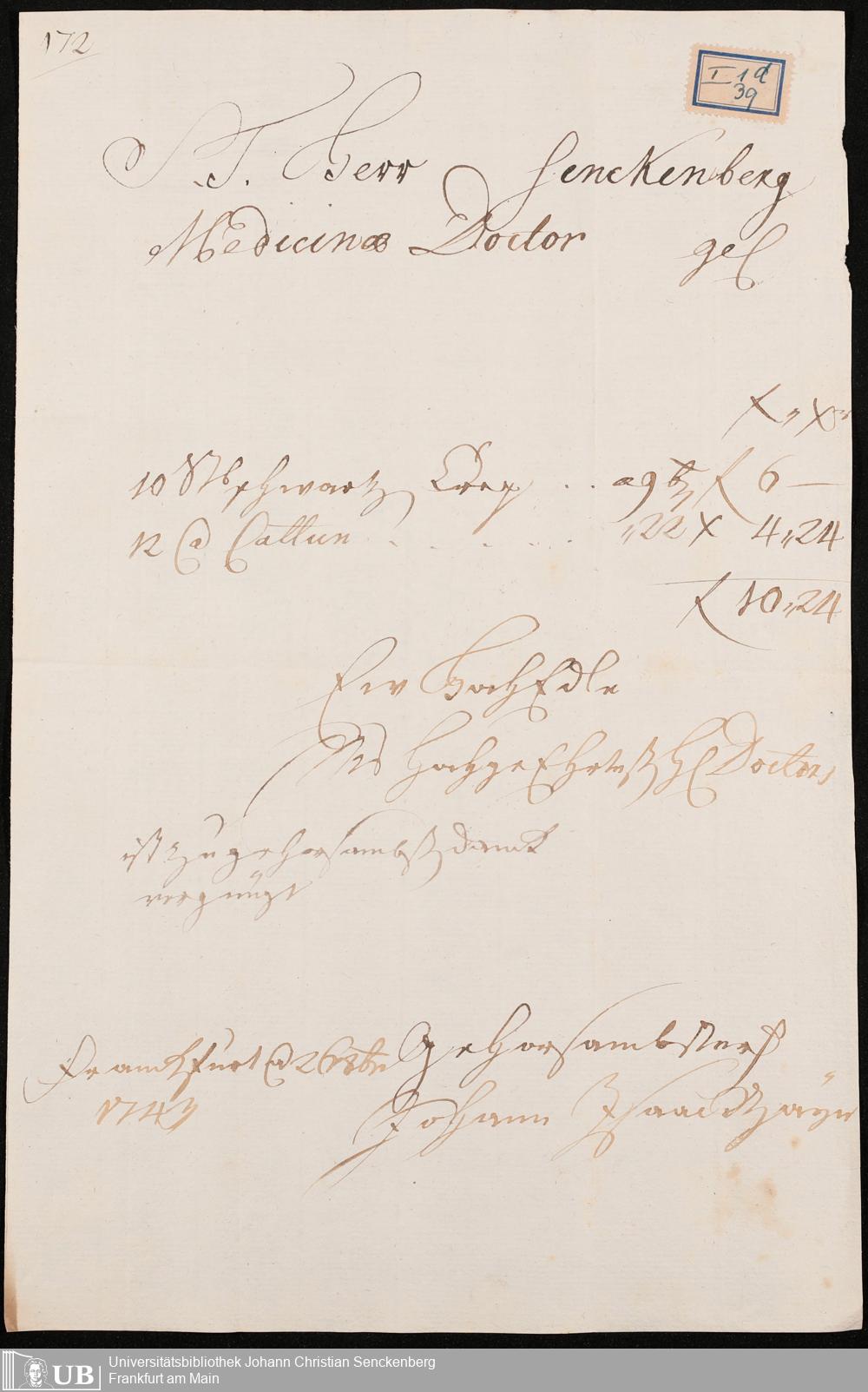 Nachlass Johann Christian Senckenberg