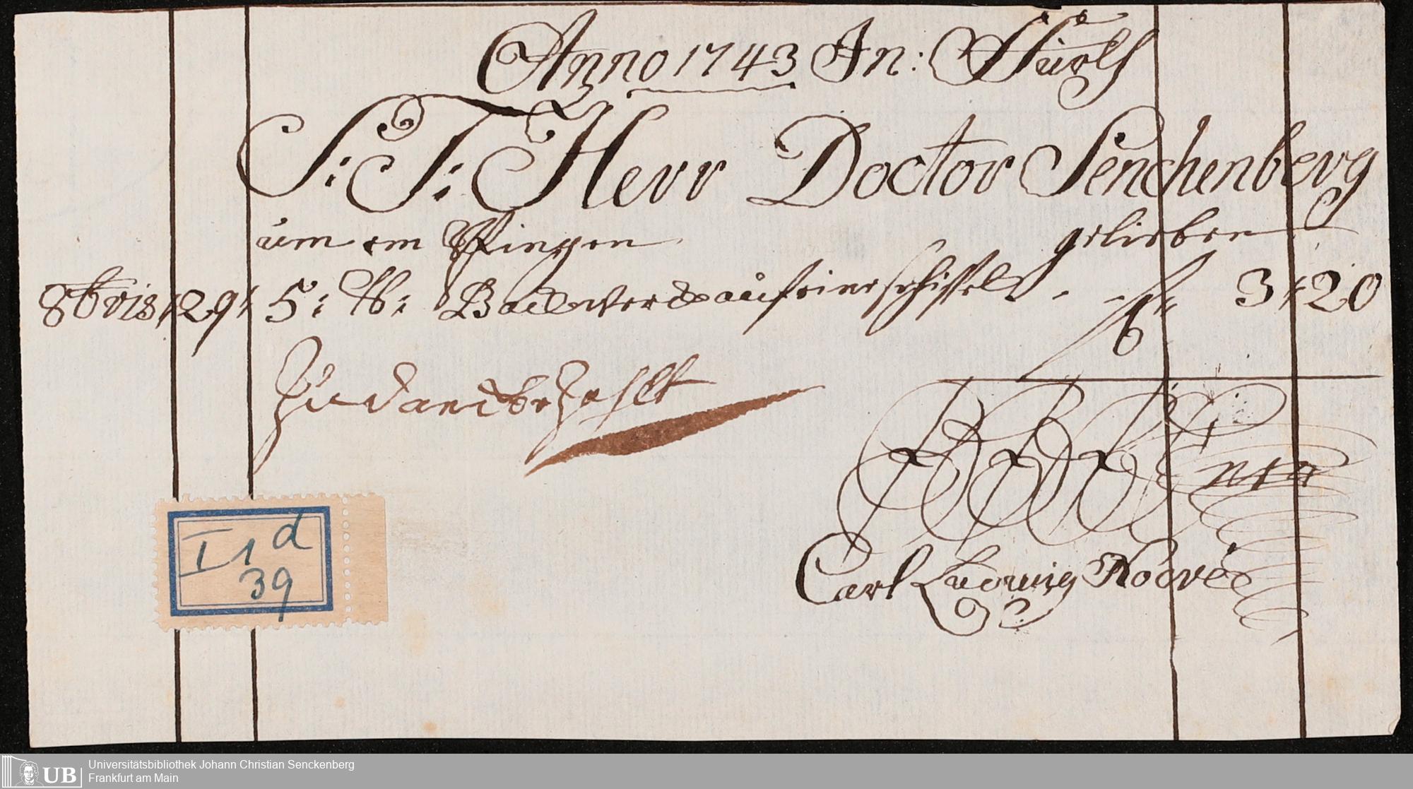 Na 31 Nachlass Johann Christian Senckenberg, 100 - Quittungen, Aufzeichnungen und Entwürfe zu den Beerdigungen der Ehefrauen Senckenbergs