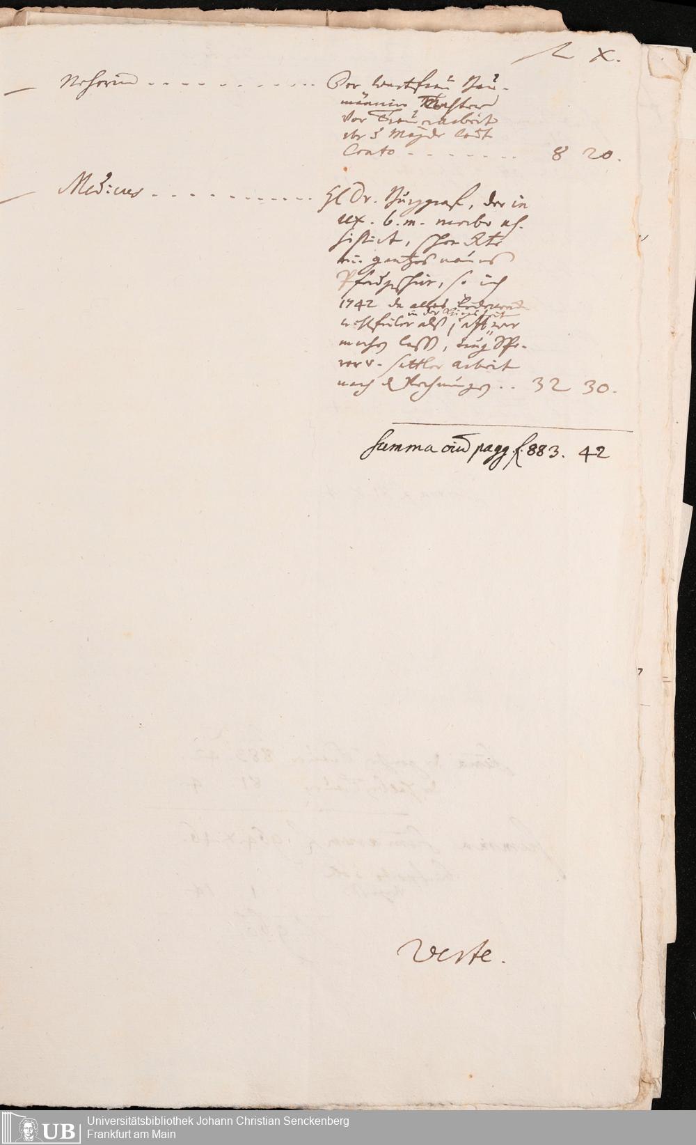 Na 31 Nachlass Johann Christian Senckenberg, 100 - Quittungen, Aufzeichnungen und Entwürfe zu den Beerdigungen der Ehefrauen Senckenbergs