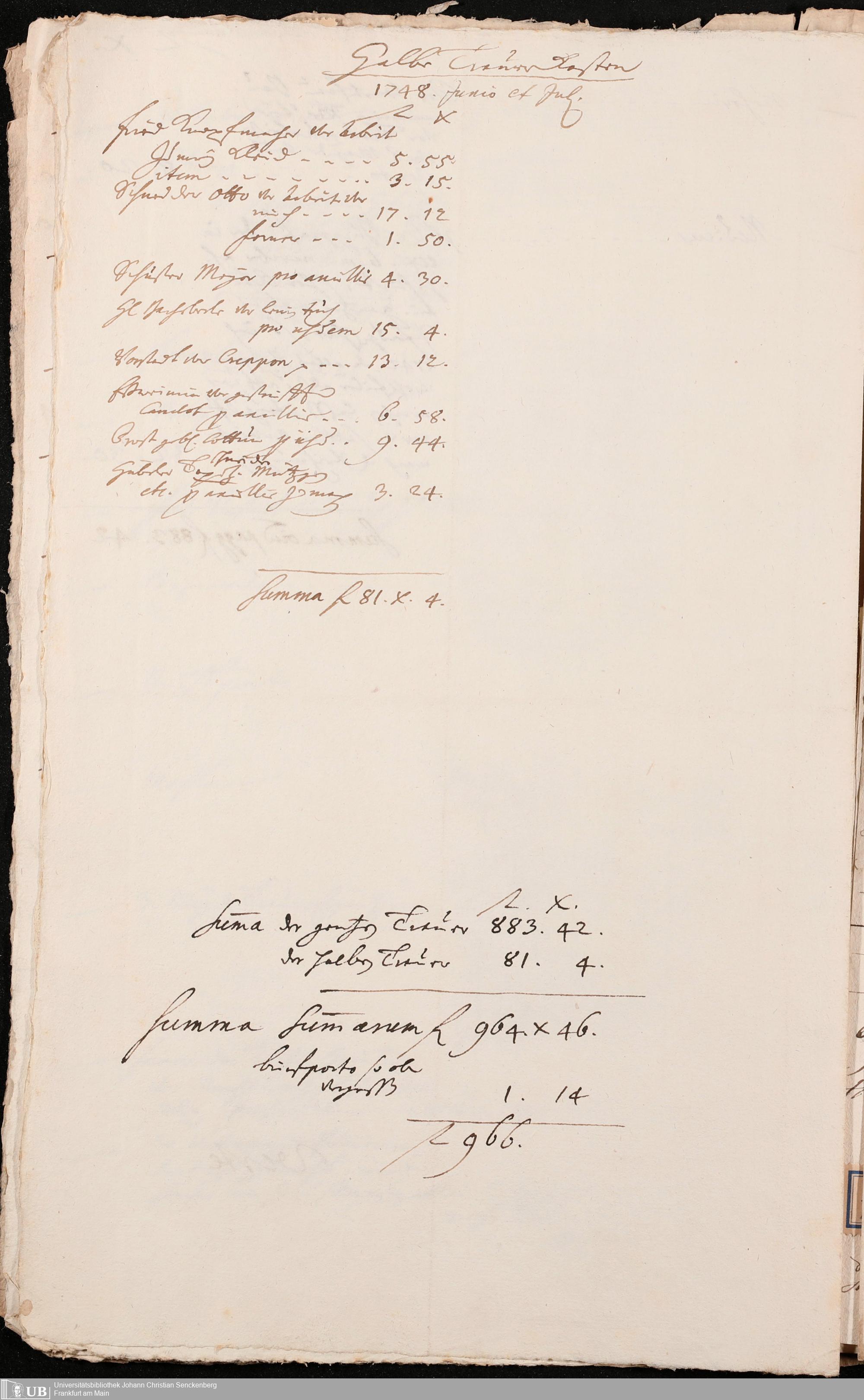 Na 31 Nachlass Johann Christian Senckenberg, 100 - Quittungen, Aufzeichnungen und Entwürfe zu den Beerdigungen der Ehefrauen Senckenbergs