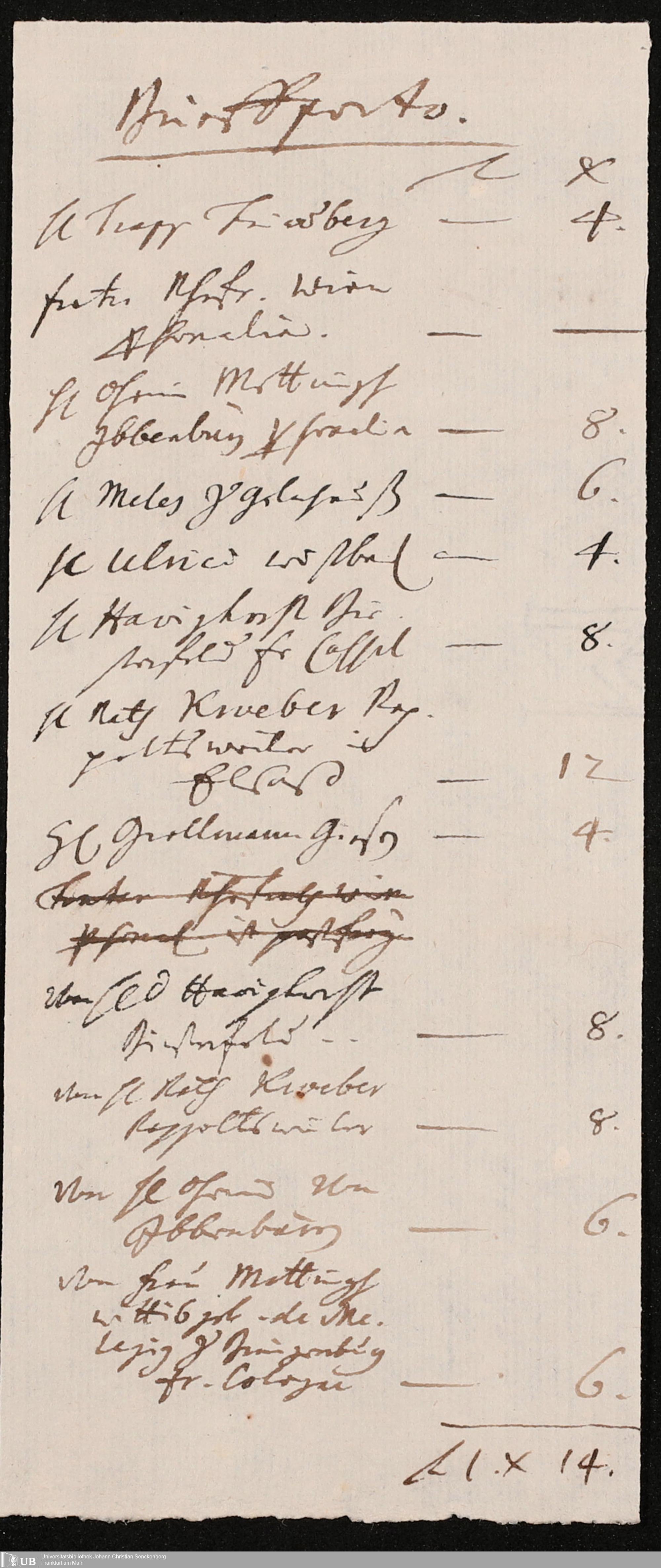 Na 31 Nachlass Johann Christian Senckenberg, 100 - Quittungen, Aufzeichnungen und Entwürfe zu den Beerdigungen der Ehefrauen Senckenbergs