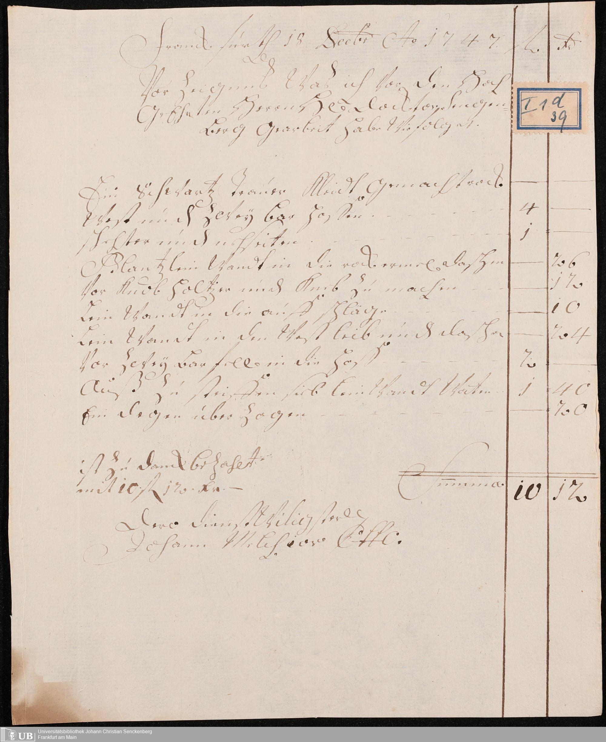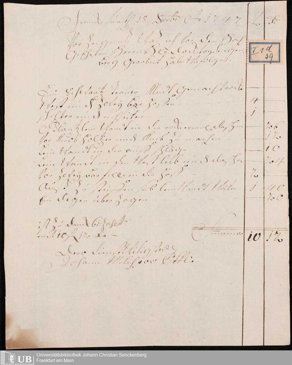 Na 31 Nachlass Johann Christian Senckenberg, 100 - Quittungen, Aufzeichnungen und Entwürfe zu den Beerdigungen der Ehefrauen Senckenbergs