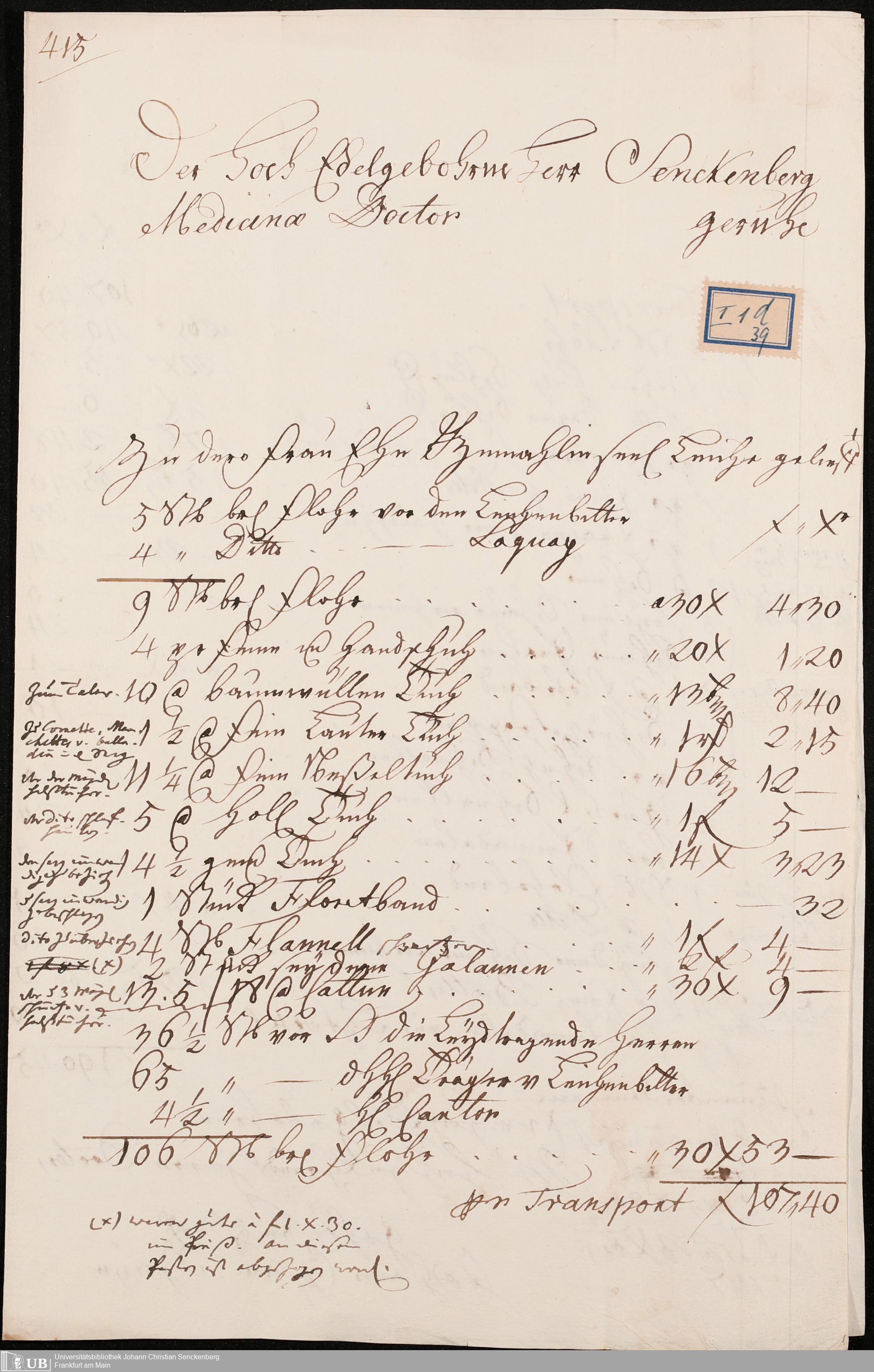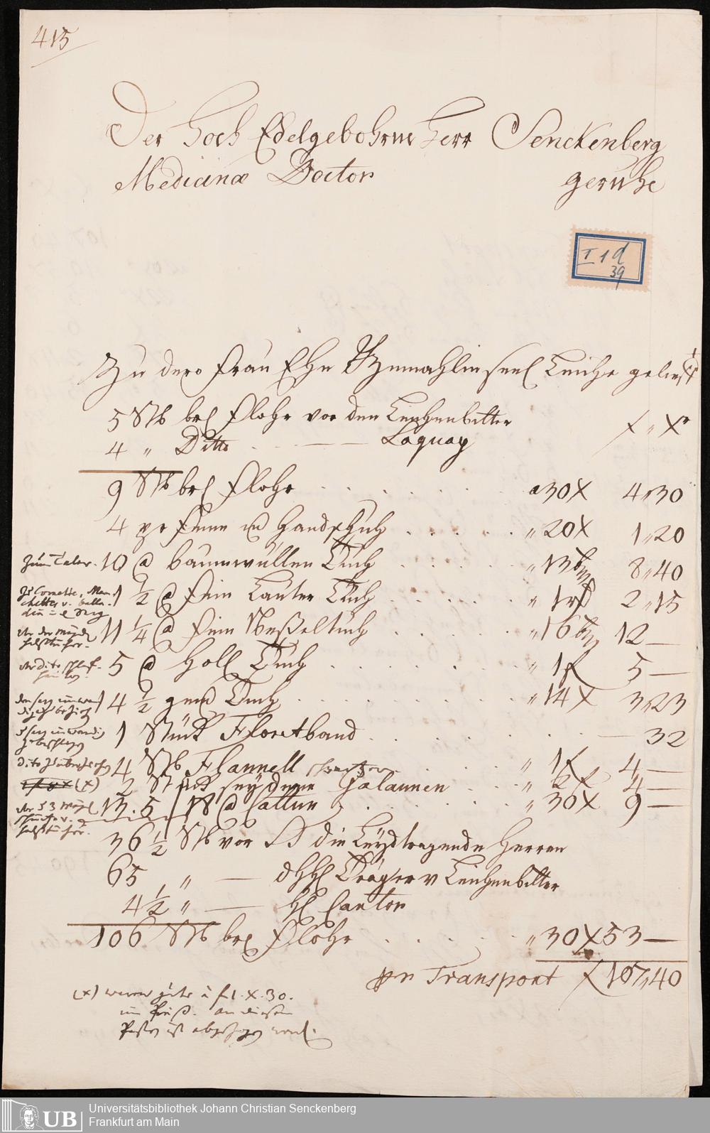 Nachlass Johann Christian Senckenberg