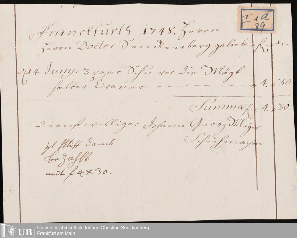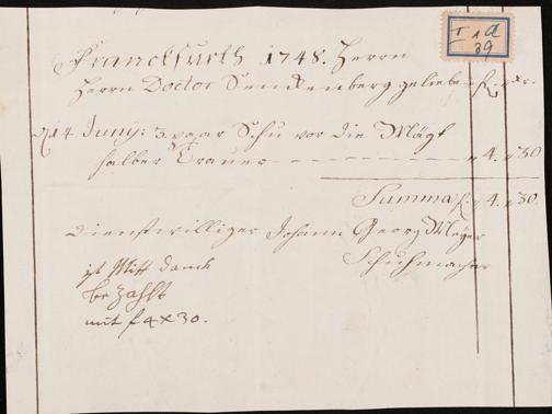 Na 31 Nachlass Johann Christian Senckenberg, 100 - Quittungen, Aufzeichnungen und Entwürfe zu den Beerdigungen der Ehefrauen Senckenbergs