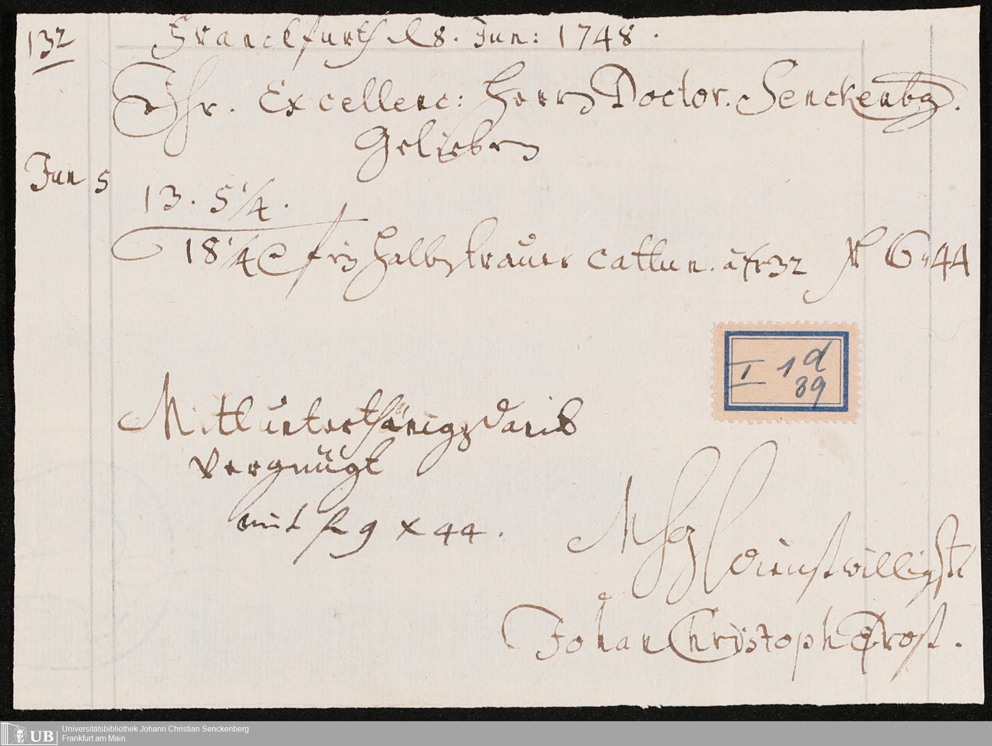 Nachlass Johann Christian Senckenberg