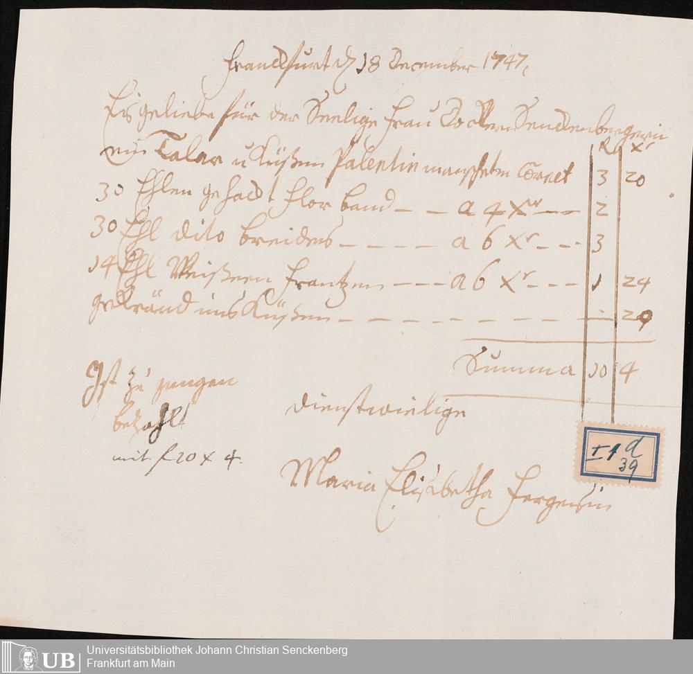 Na 31 Nachlass Johann Christian Senckenberg, 100 - Quittungen, Aufzeichnungen und Entwürfe zu den Beerdigungen der Ehefrauen Senckenbergs