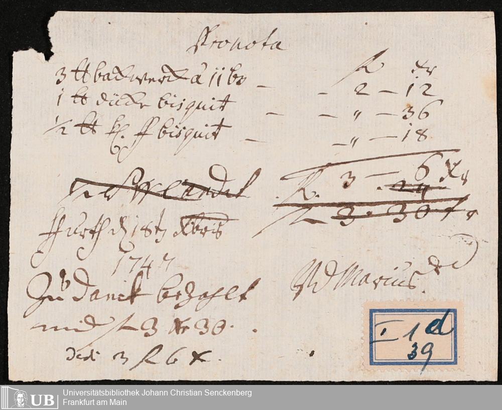 Na 31 Nachlass Johann Christian Senckenberg, 100 - Quittungen, Aufzeichnungen und Entwürfe zu den Beerdigungen der Ehefrauen Senckenbergs