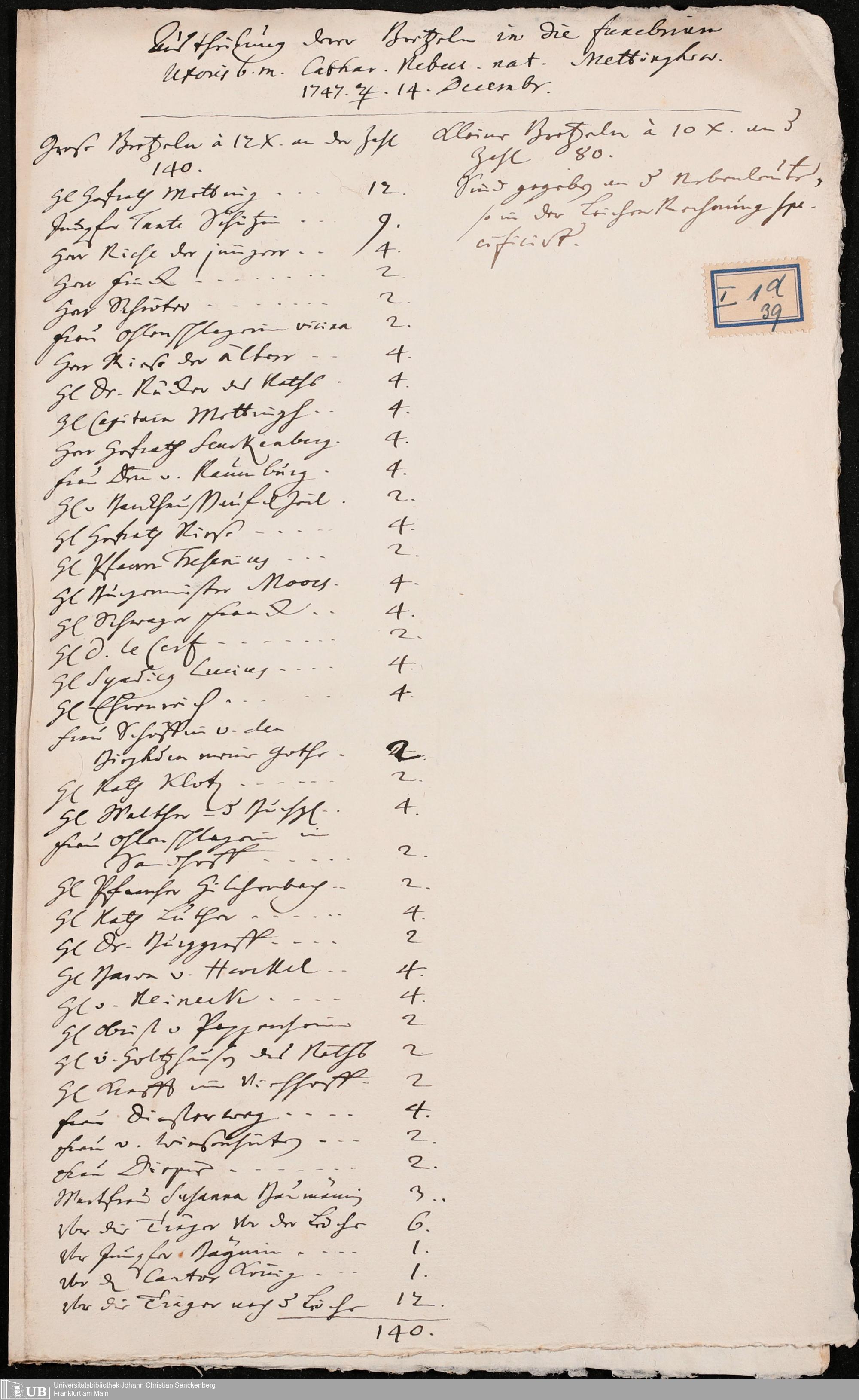 Nachlass Johann Christian Senckenberg
