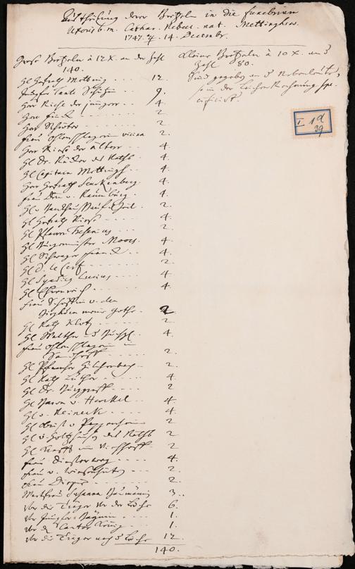 Na 31 Nachlass Johann Christian Senckenberg, 100 - Quittungen, Aufzeichnungen und Entwürfe zu den Beerdigungen der Ehefrauen Senckenbergs