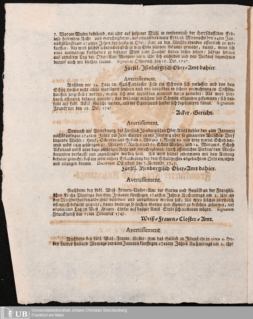 Nachlass Johann Christian Senckenberg