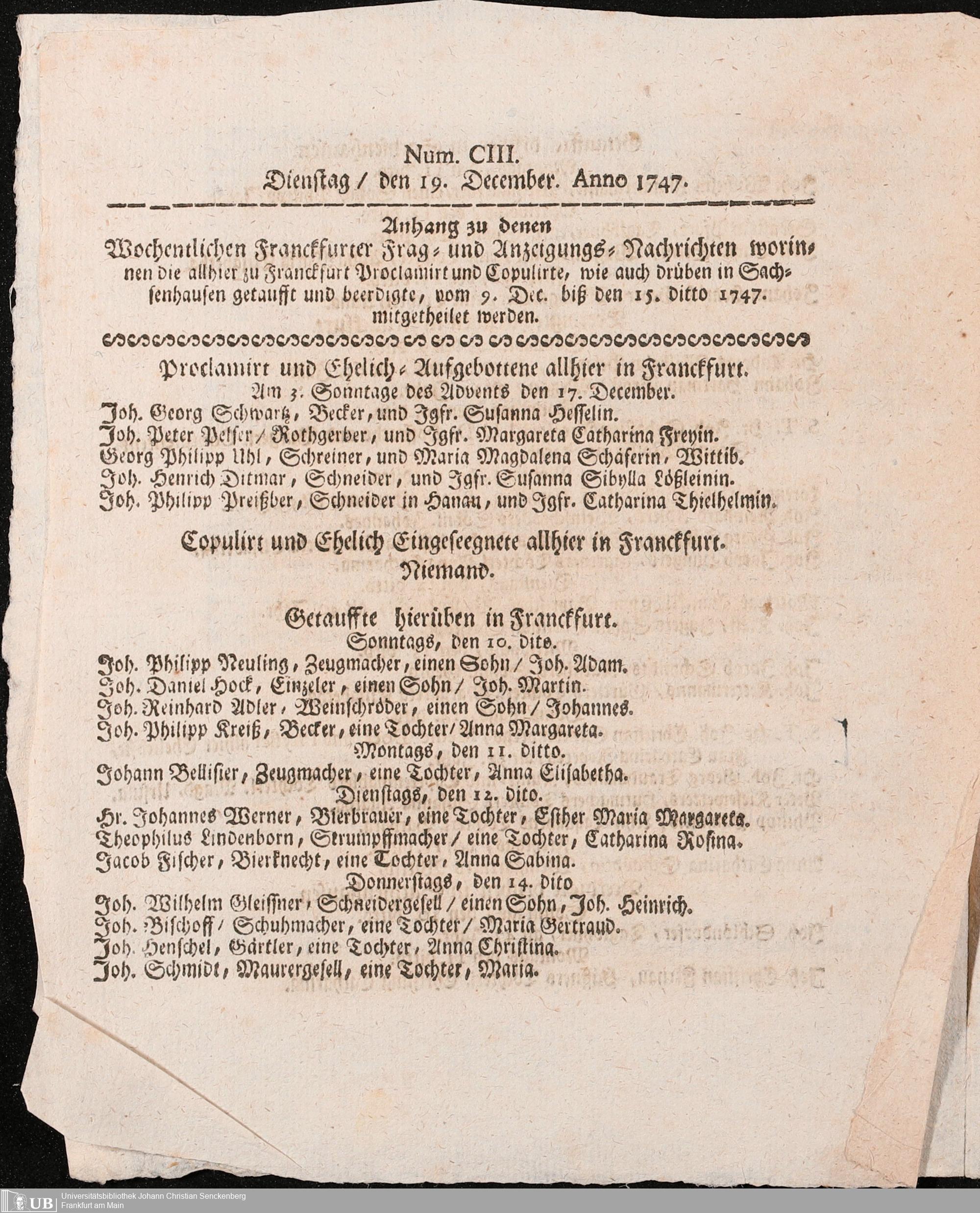 Nachlass Johann Christian Senckenberg