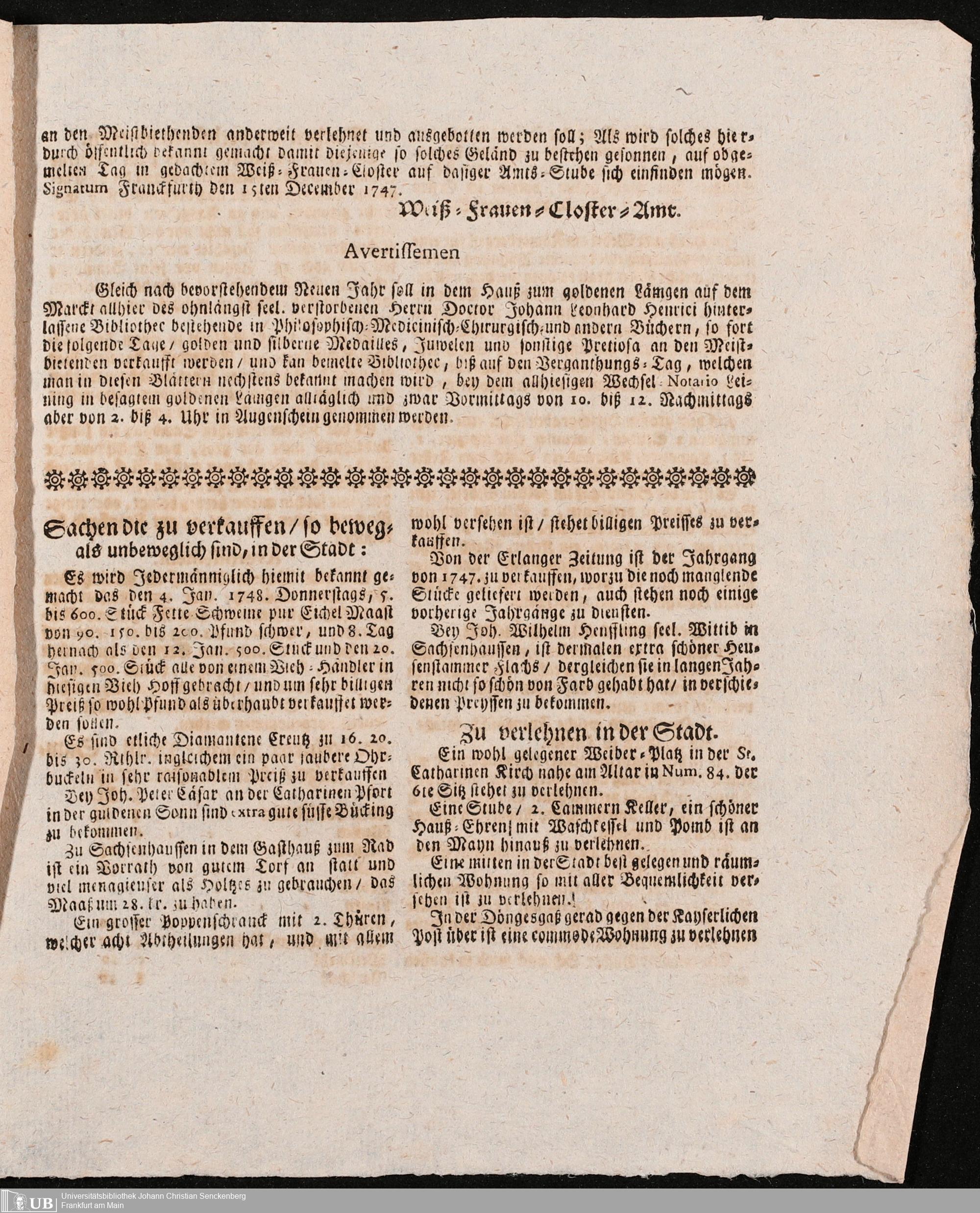 Na 31 Nachlass Johann Christian Senckenberg, 100 - Quittungen, Aufzeichnungen und Entwürfe zu den Beerdigungen der Ehefrauen Senckenbergs