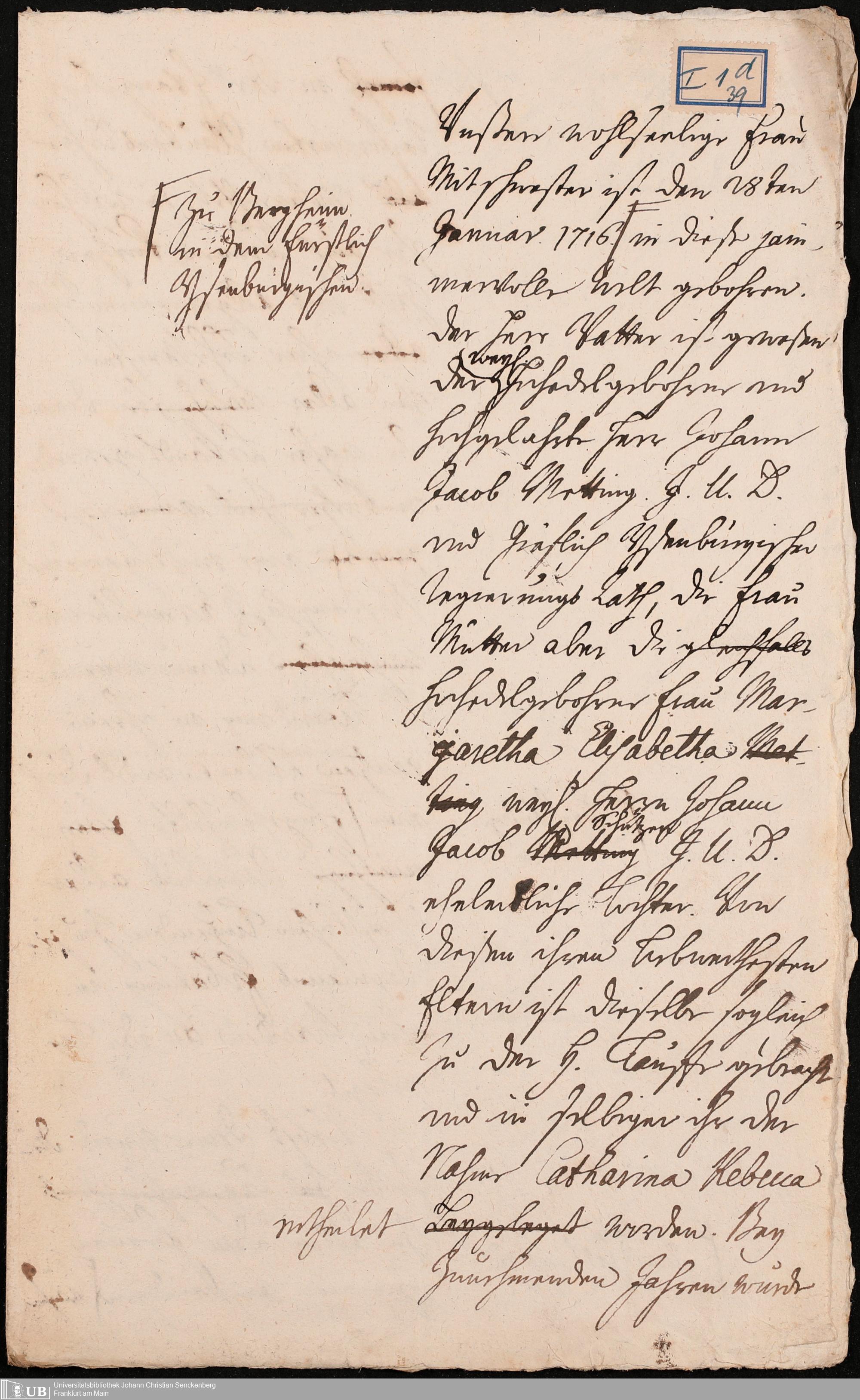 Na 31 Nachlass Johann Christian Senckenberg, 100 - Quittungen, Aufzeichnungen und Entwürfe zu den Beerdigungen der Ehefrauen Senckenbergs