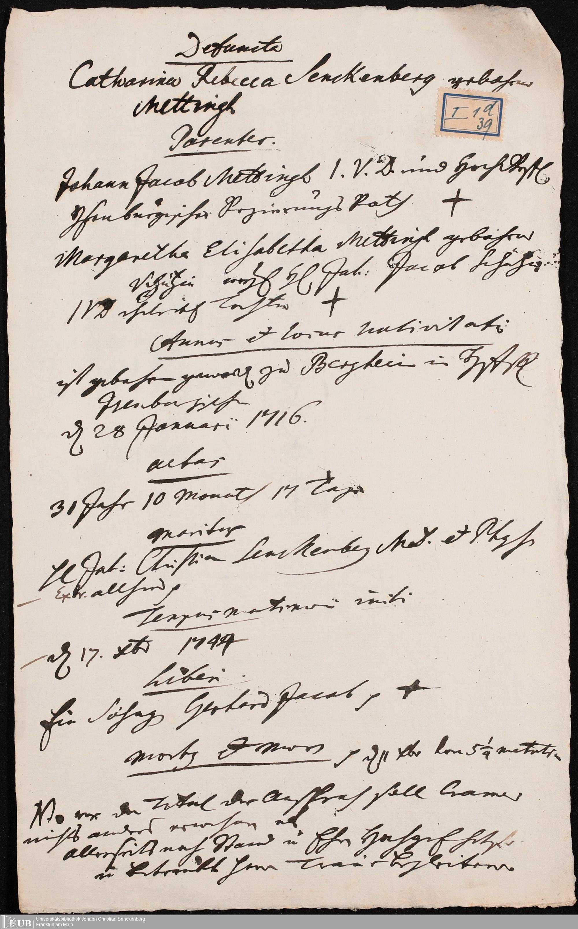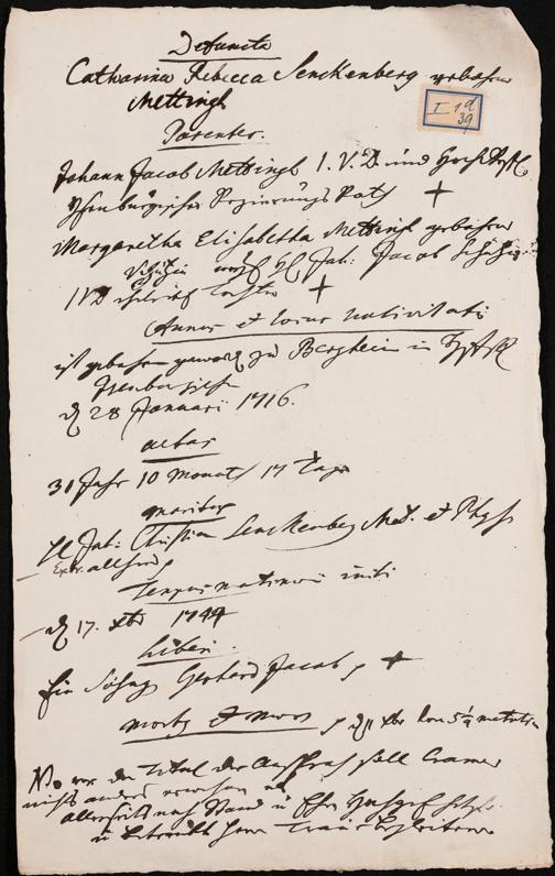Na 31 Nachlass Johann Christian Senckenberg, 100 - Quittungen, Aufzeichnungen und Entwürfe zu den Beerdigungen der Ehefrauen Senckenbergs