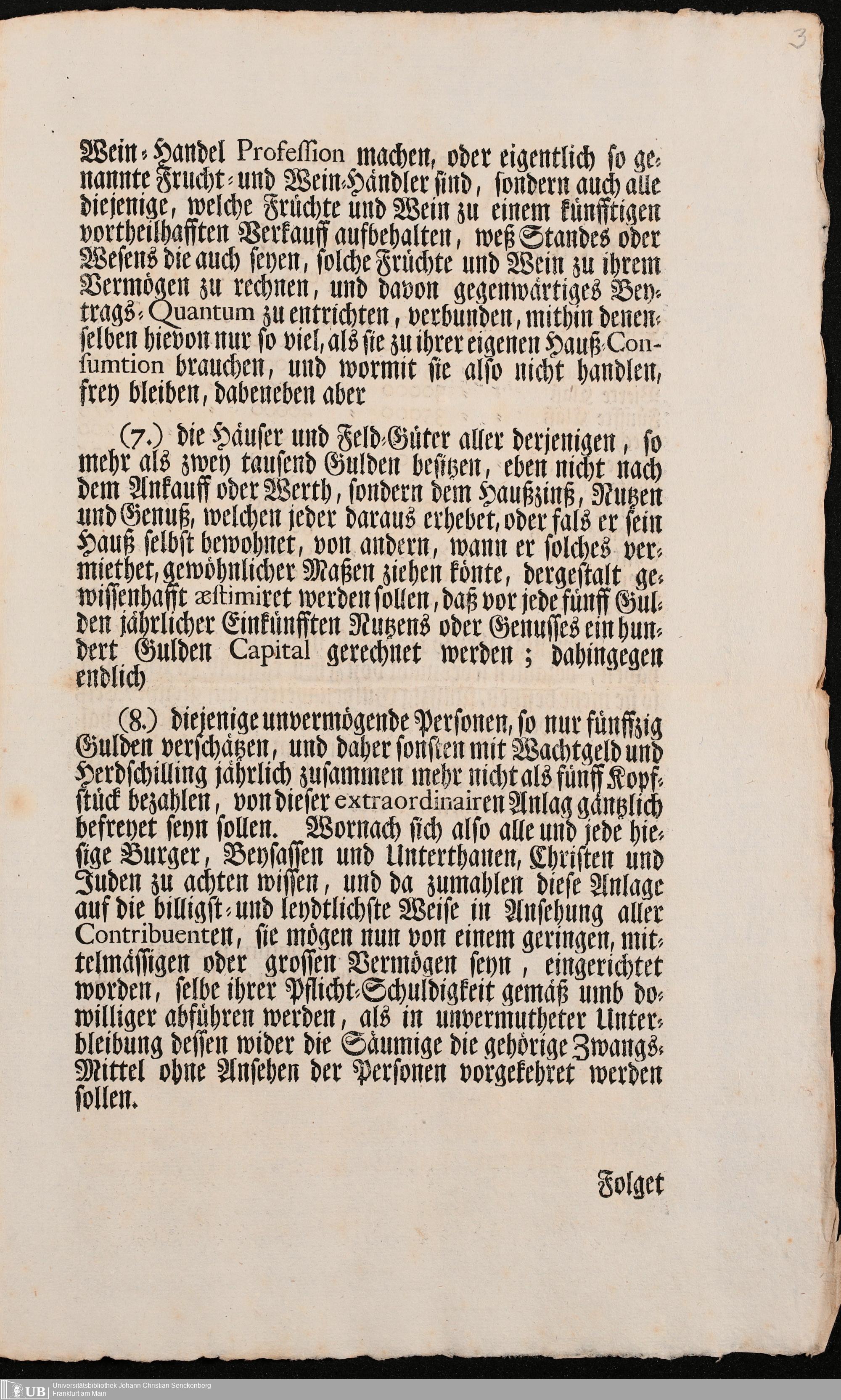 Na 31 Nachlass Johann Christian Senckenberg, 195 - Kayserliches Rescript betreffend Erzwingung einer verbotenen Vermögenssteuer in Frankfurt