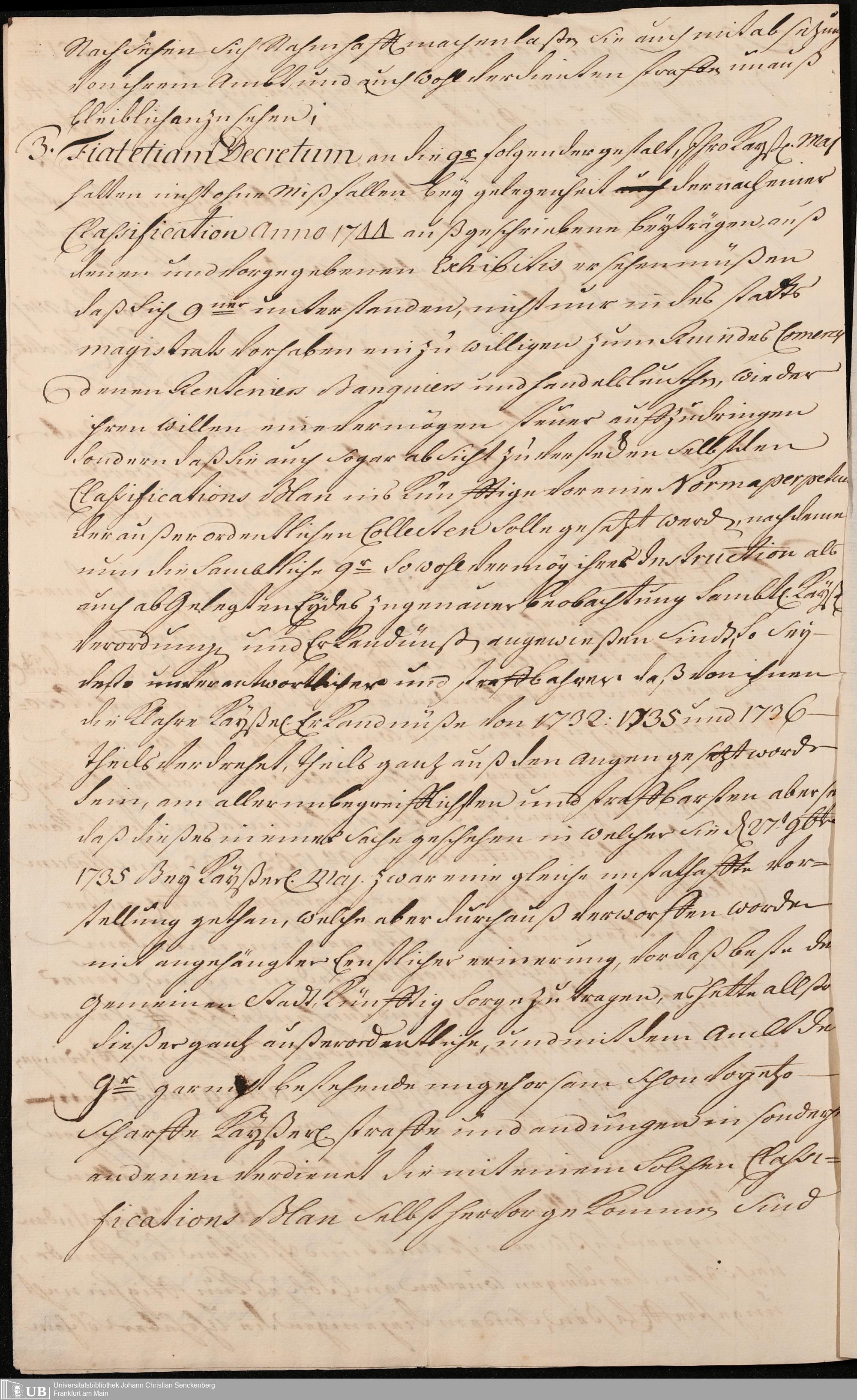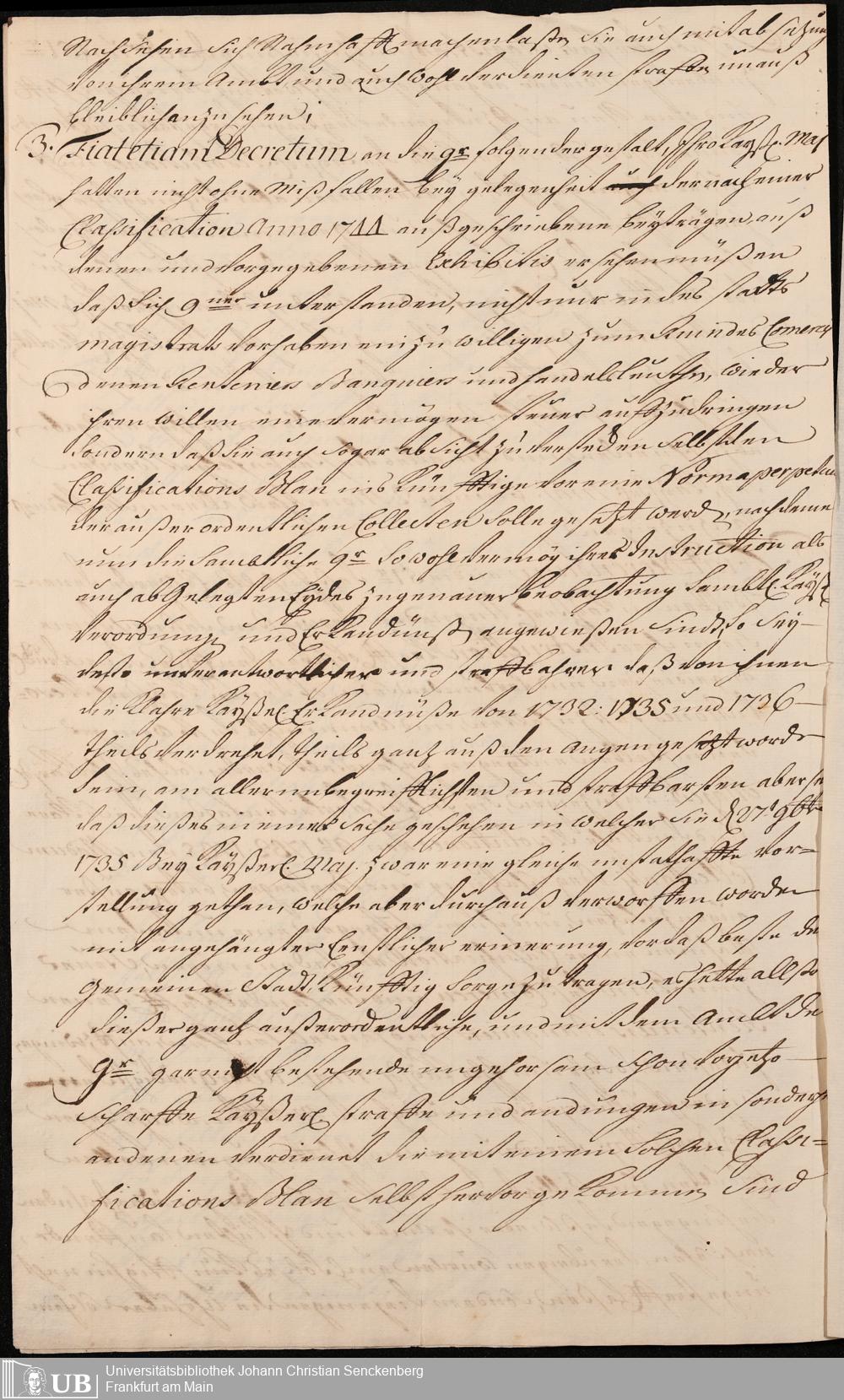 Na 31 Nachlass Johann Christian Senckenberg, 195 - Kayserliches Rescript betreffend Erzwingung einer verbotenen Vermögenssteuer in Frankfurt