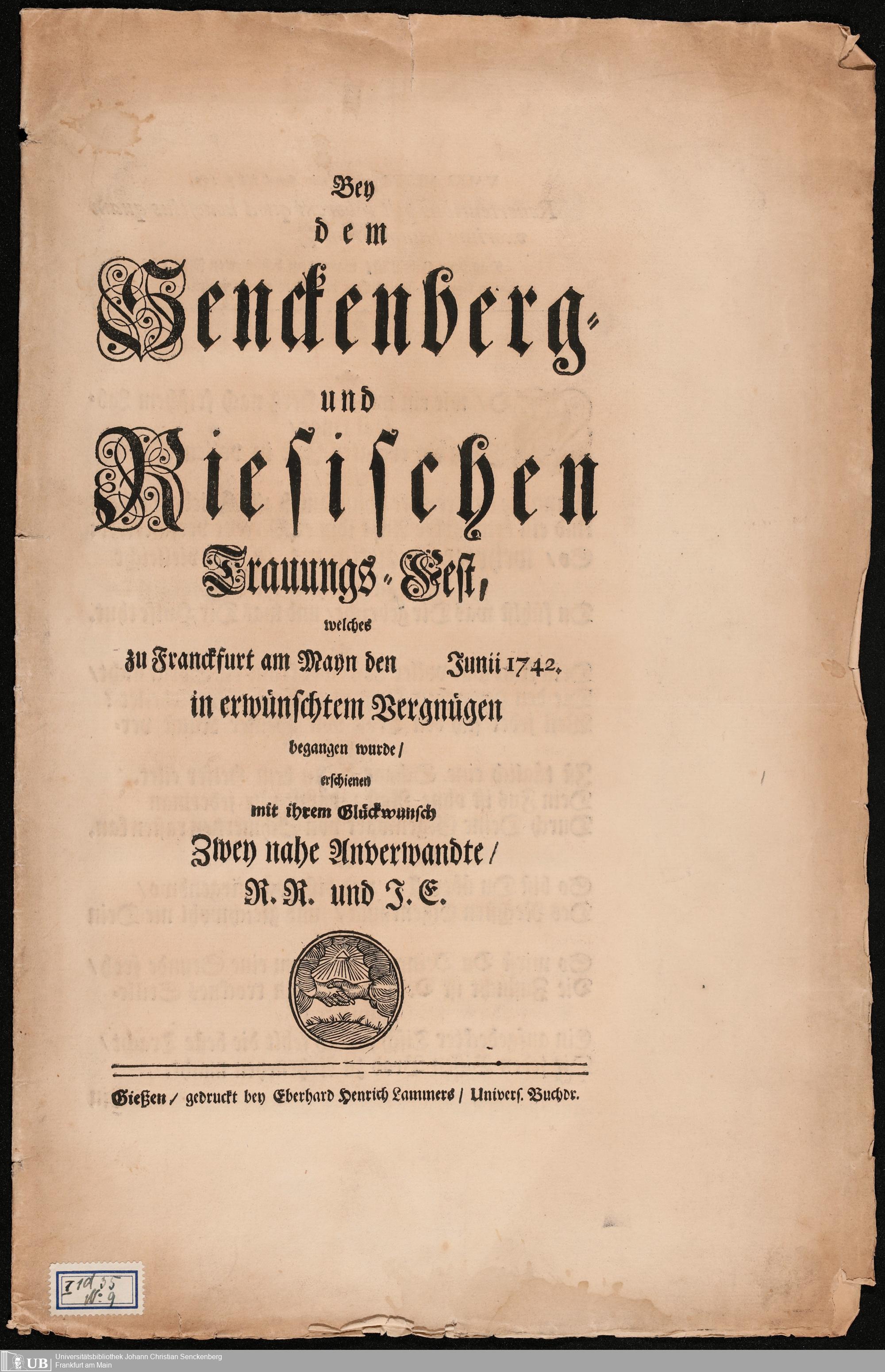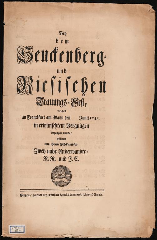 Na 31 Nachlass Johann Christian Senckenberg, 96 - Papiere über die erste Eheschließung mit Johanna Rebeca Riese