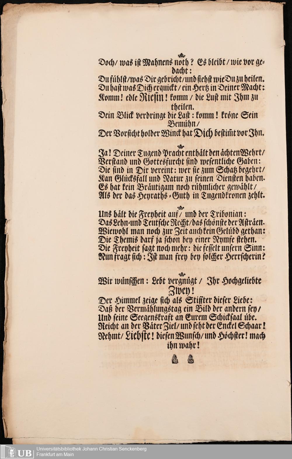 Na 31 Nachlass Johann Christian Senckenberg, 96 - Papiere über die erste Eheschließung mit Johanna Rebeca Riese