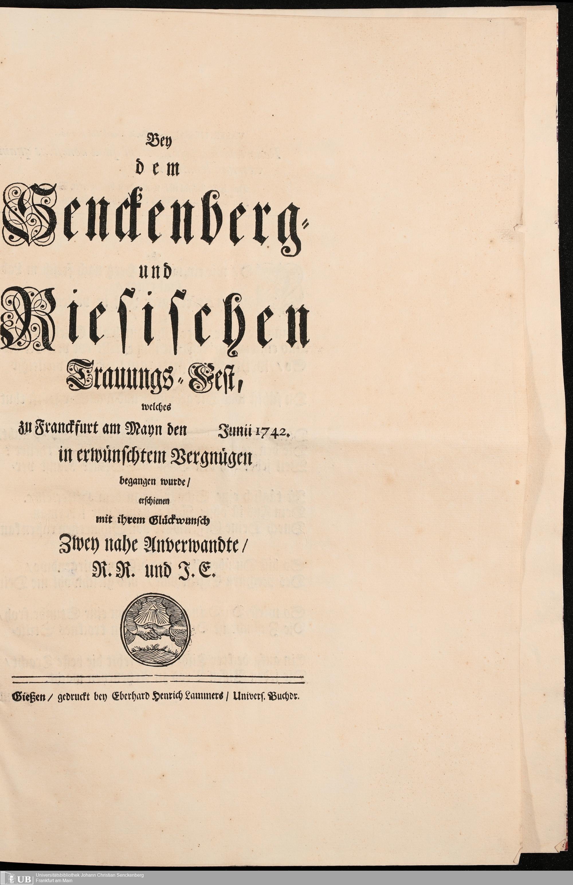 Na 31 Nachlass Johann Christian Senckenberg, 96 - Papiere über die erste Eheschließung mit Johanna Rebeca Riese