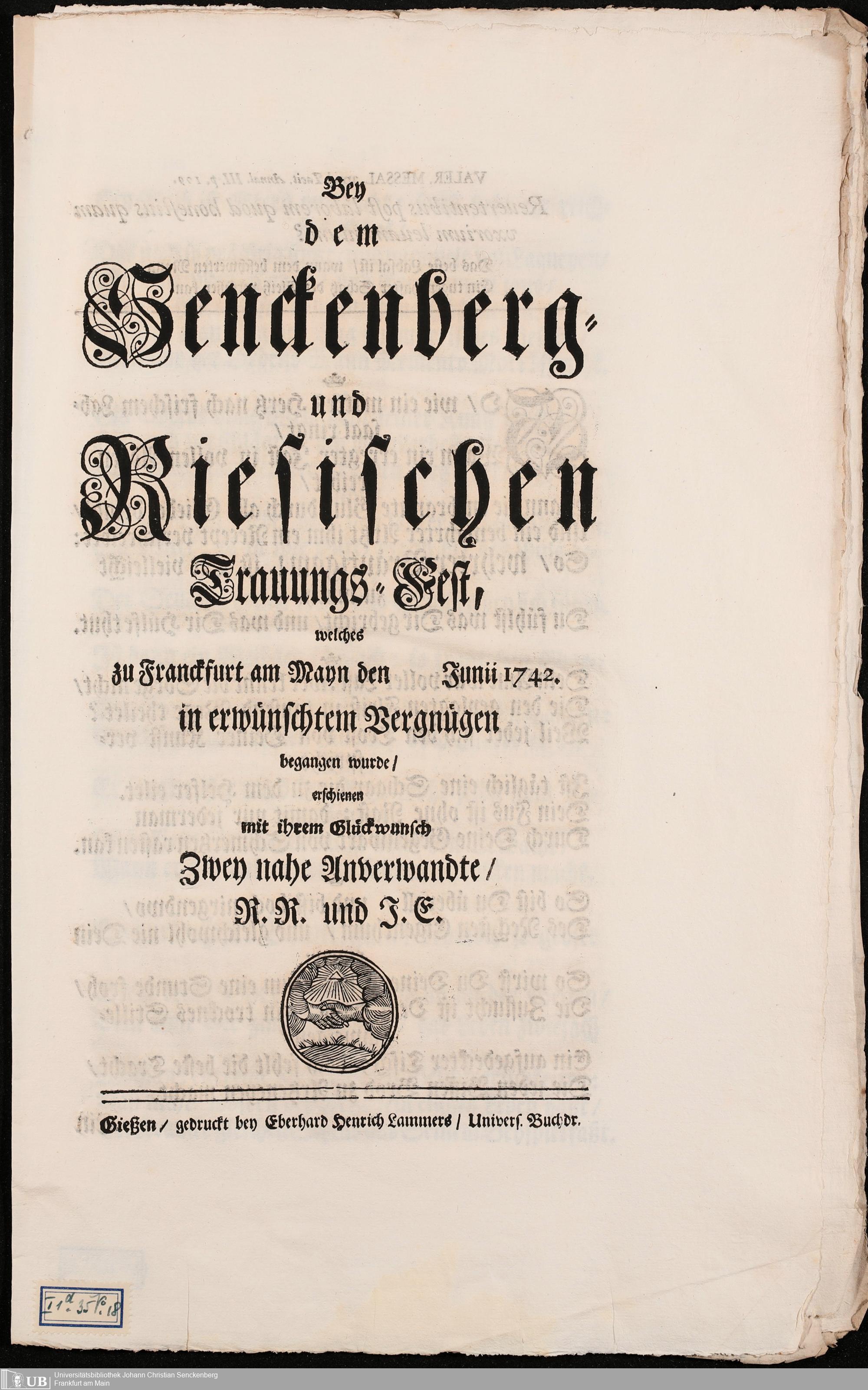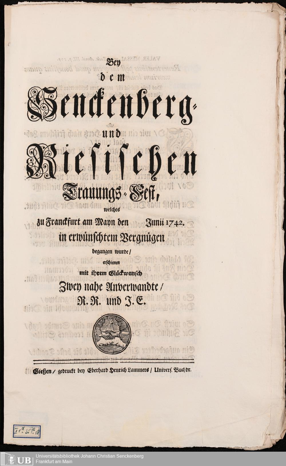 Na 31 Nachlass Johann Christian Senckenberg, 96 - Papiere über die erste Eheschließung mit Johanna Rebeca Riese