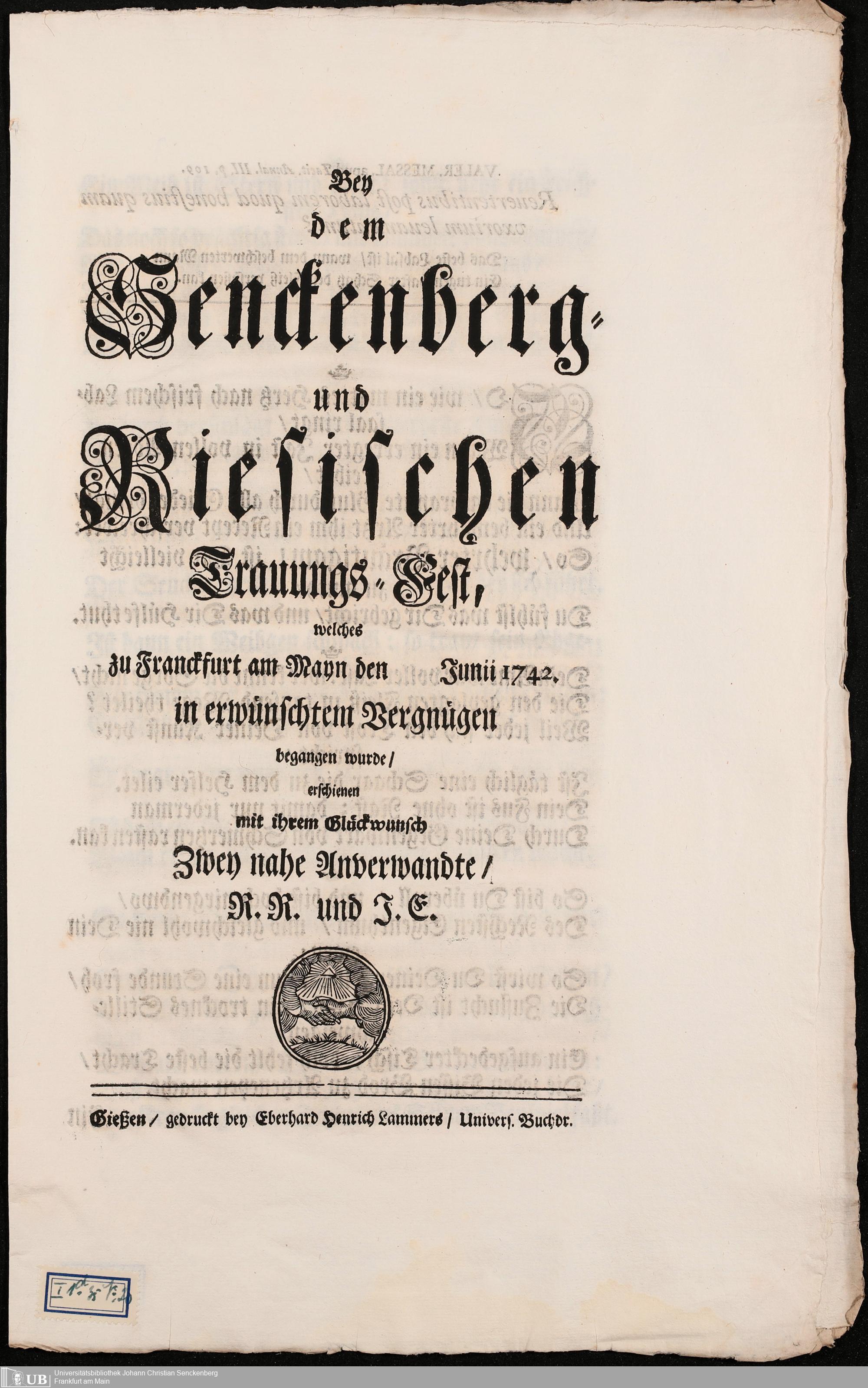 Na 31 Nachlass Johann Christian Senckenberg, 96 - Papiere über die erste Eheschließung mit Johanna Rebeca Riese