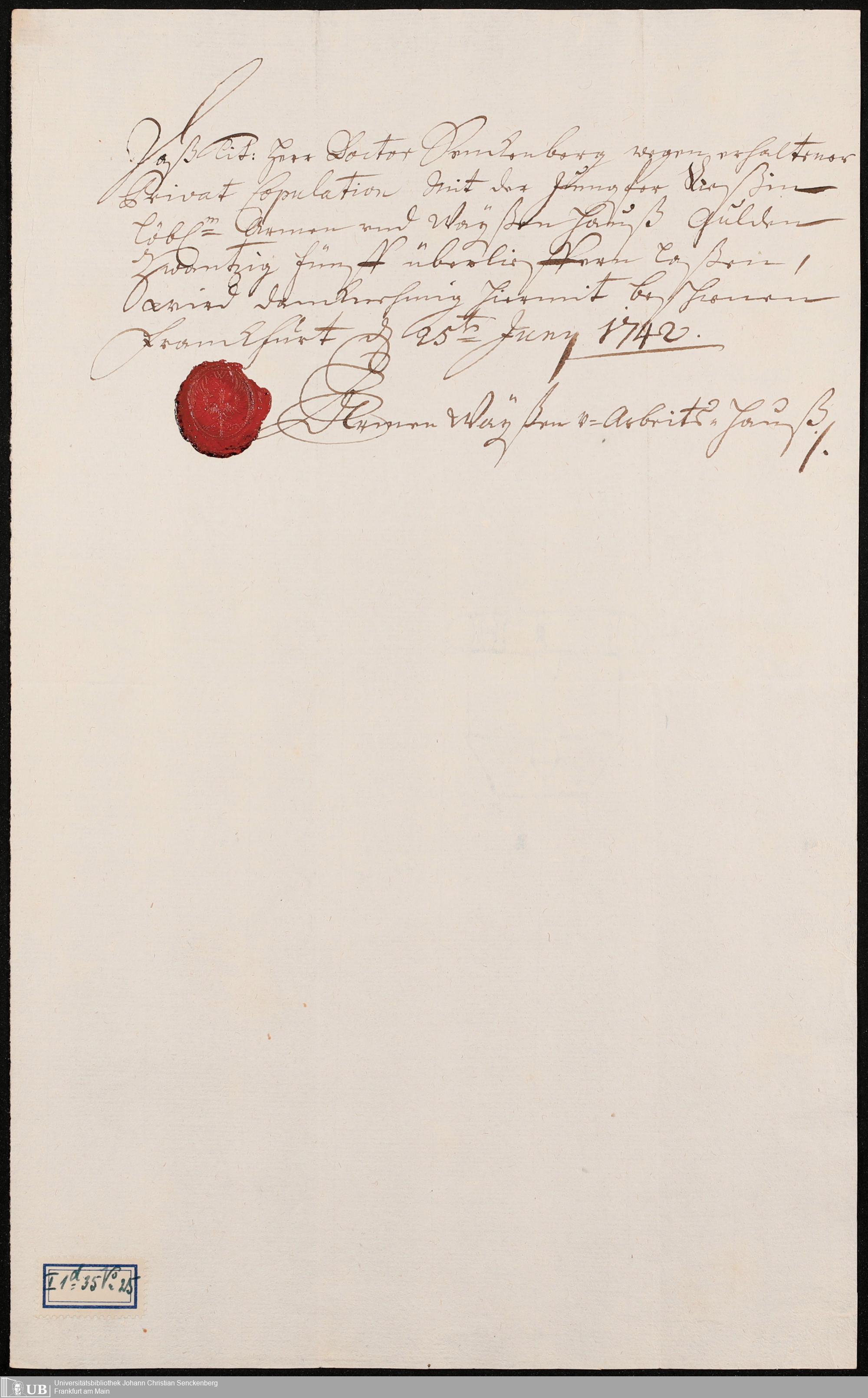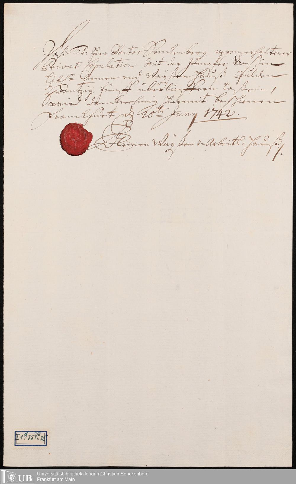 Na 31 Nachlass Johann Christian Senckenberg, 96 - Papiere über die erste Eheschließung mit Johanna Rebeca Riese
