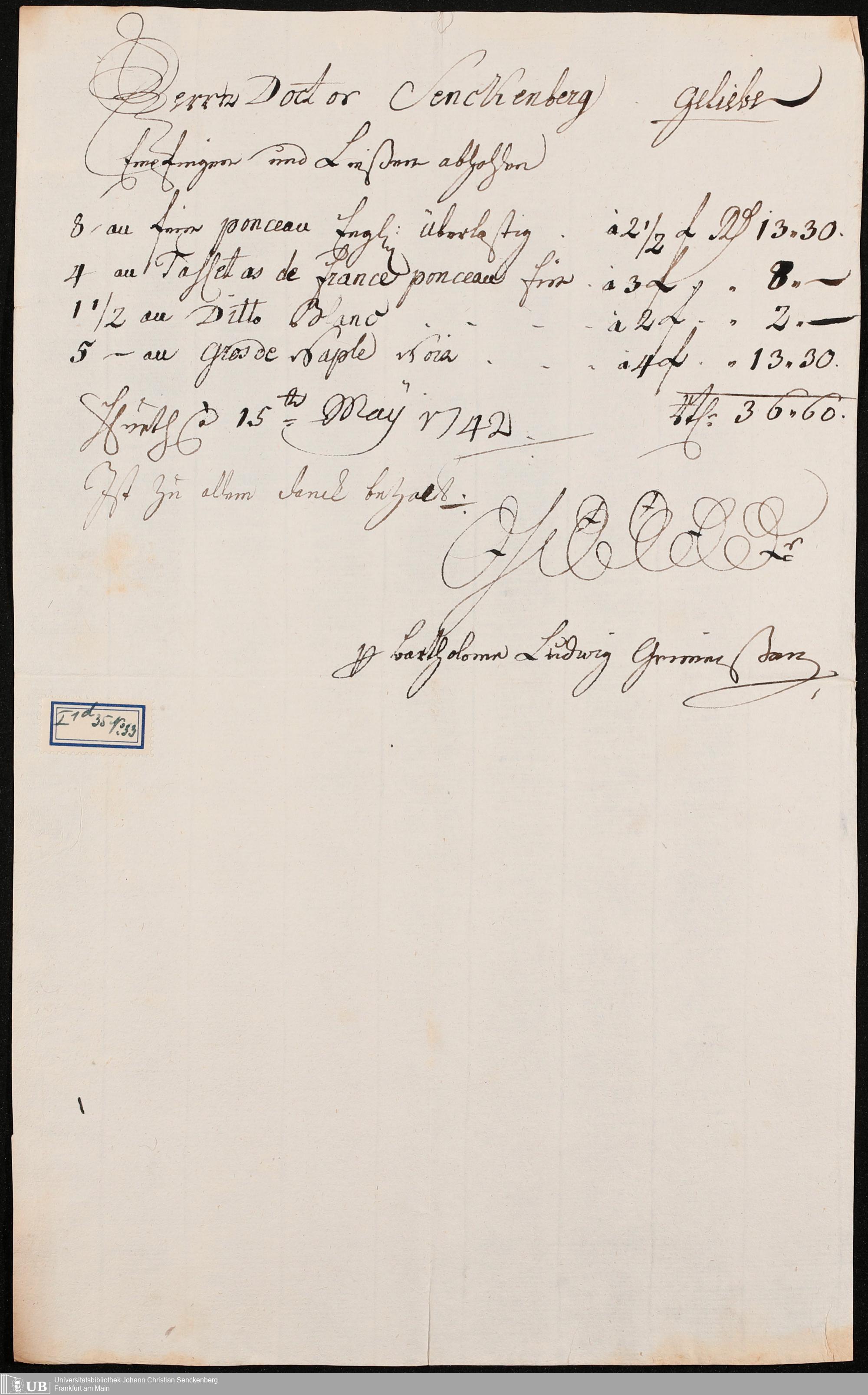 Na 31 Nachlass Johann Christian Senckenberg, 96 - Papiere über die erste Eheschließung mit Johanna Rebeca Riese