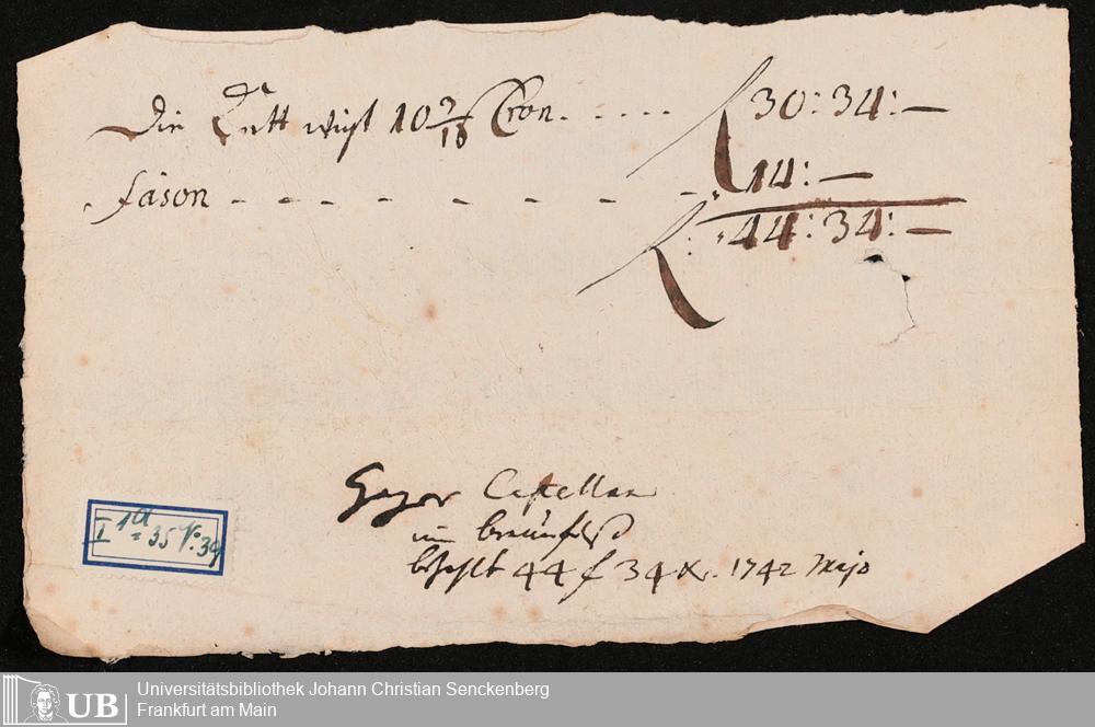 Na 31 Nachlass Johann Christian Senckenberg, 96 - Papiere über die erste Eheschließung mit Johanna Rebeca Riese