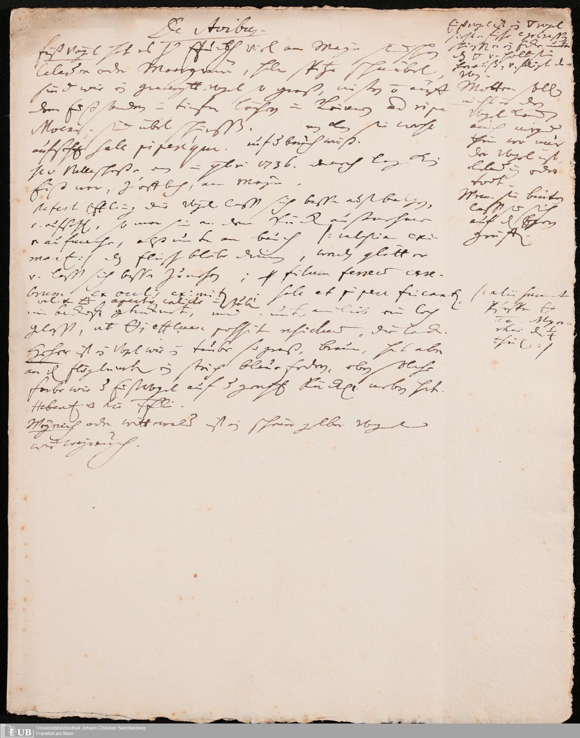 Na 31 Nachlass Johann Christian Senckenberg, 176 - Naturwissenschaftliche Aufzeichnungen zur Zoologie