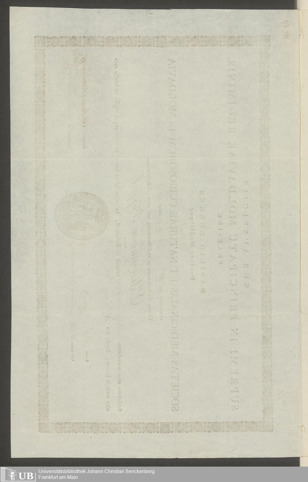 gr. 2˚ Hs 1 - Dr. Eduard Rüppell betreffende Diplome und Ehrenschreiben aus den Jahren 1818 - 1879. Nr. 1 - 64, nebst Verzeichnis