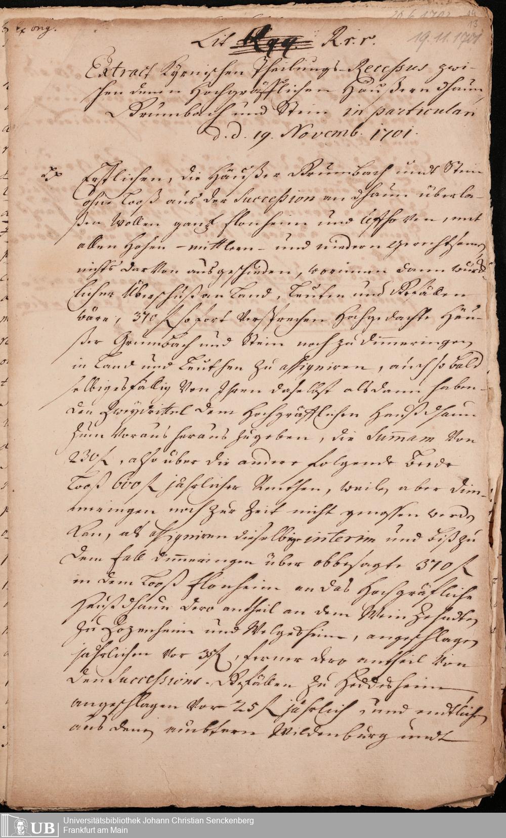 Na 31 Nachlass Johann Christian Senckenberg, 204 - Abschriften von Aktenstücken aus dem Dhaunschen Archiv