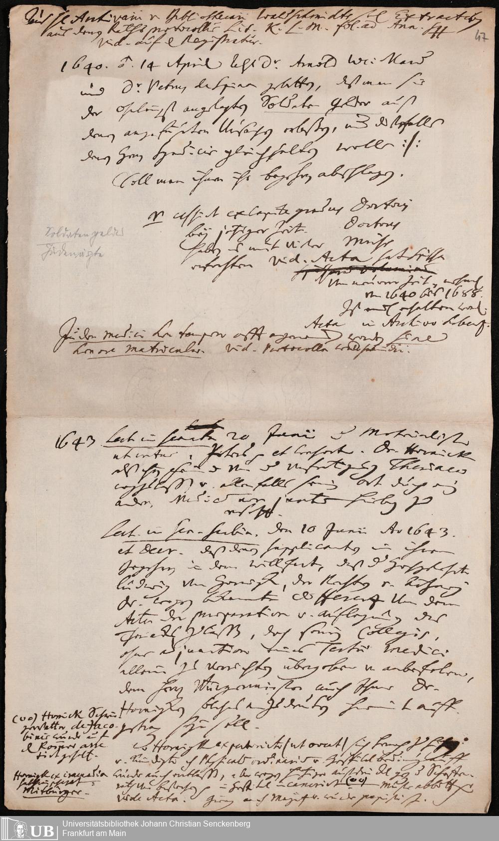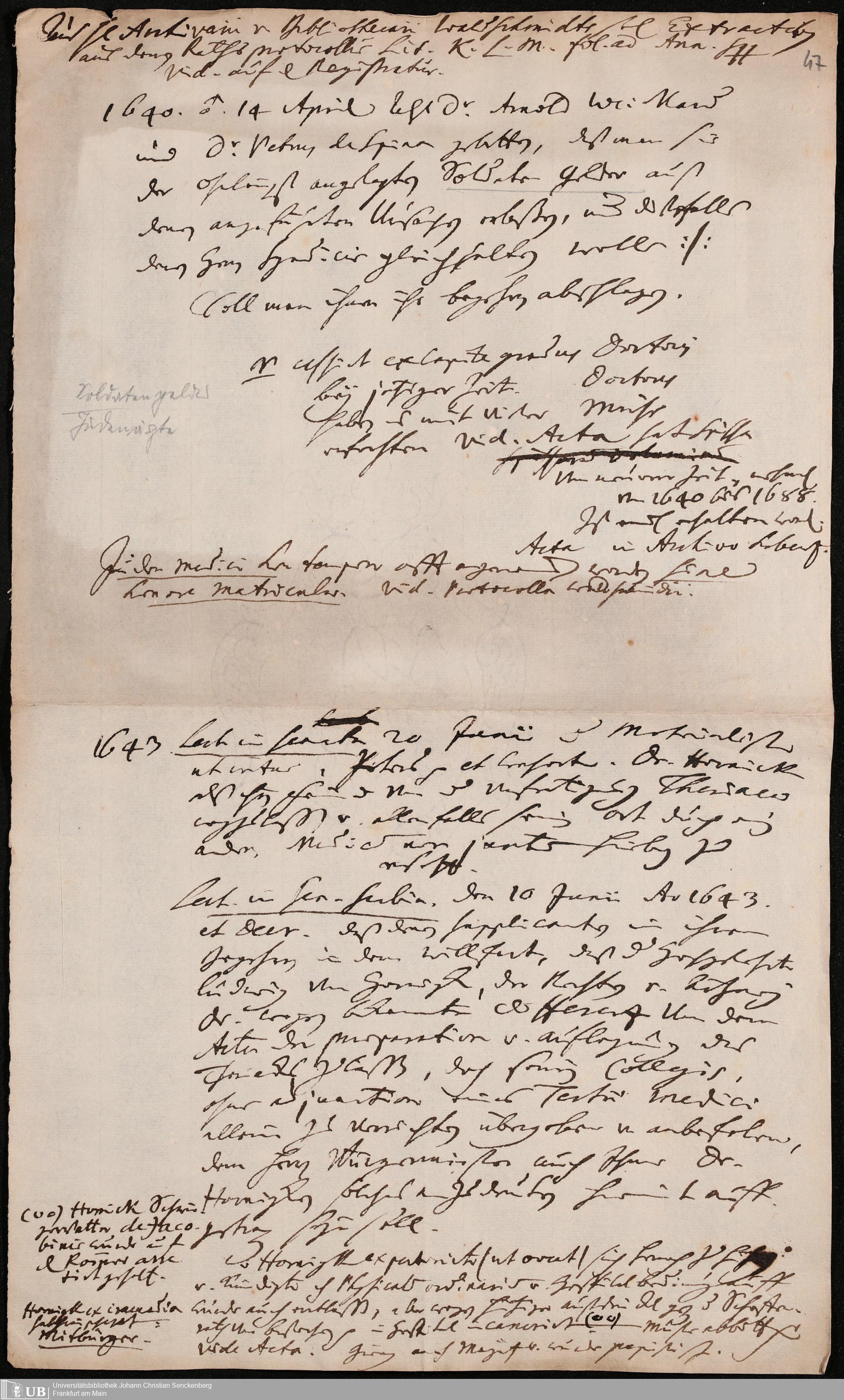 Na 31 Nachlass Johann Christian Senckenberg, 196 - Notizen über die Münzverschlechterung, Salärfragen, Arzthonorare