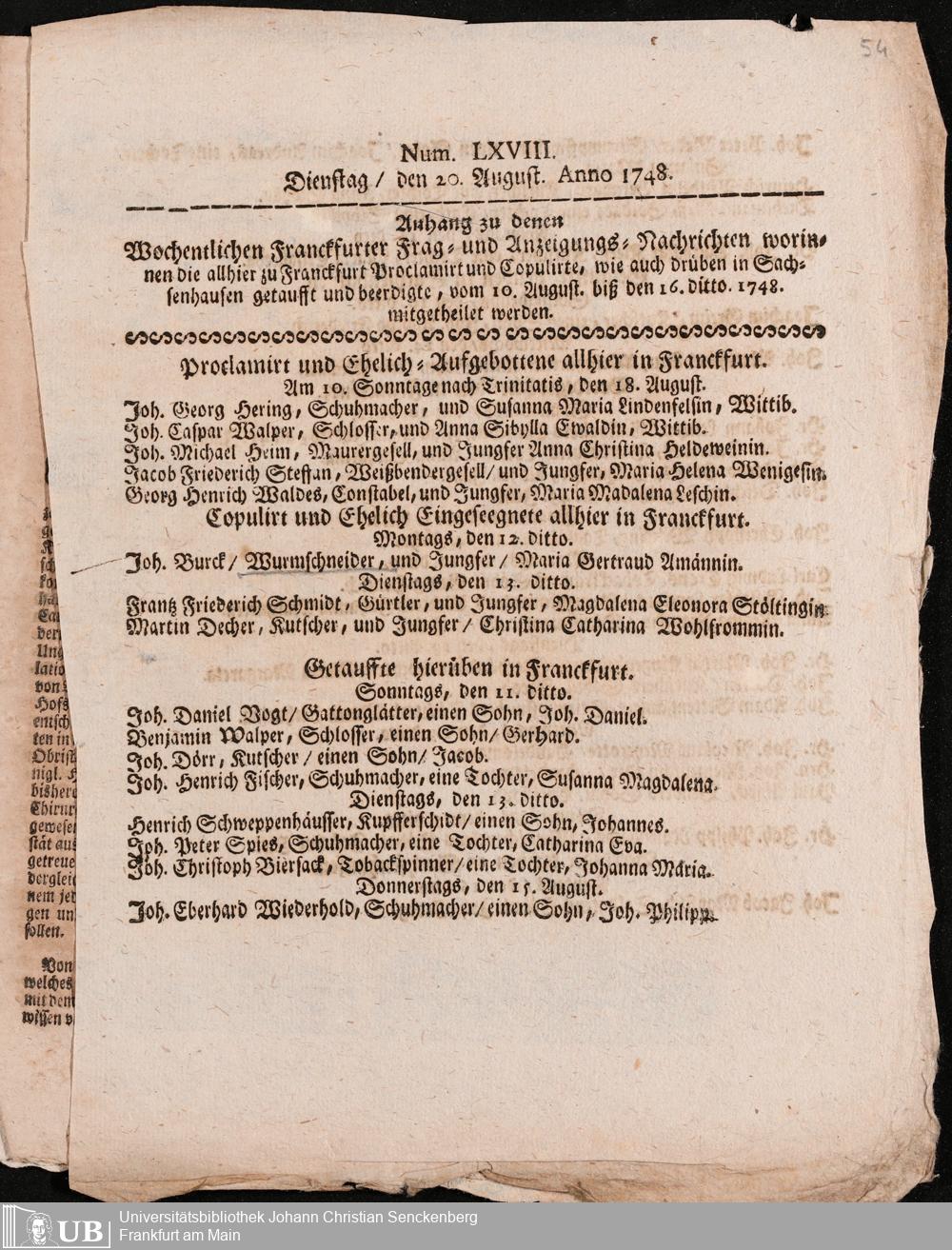 Nachlass Johann Christian Ehrmann
