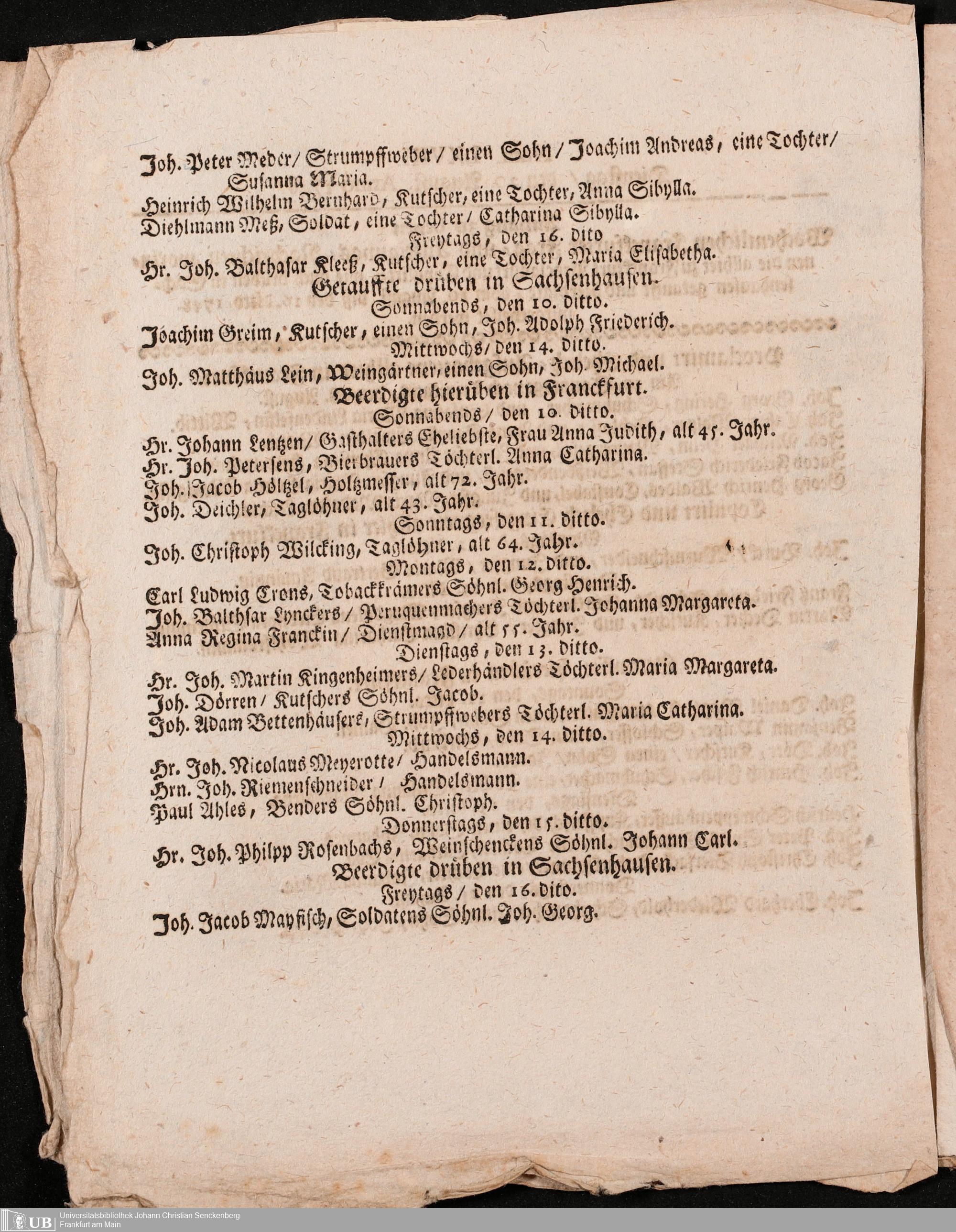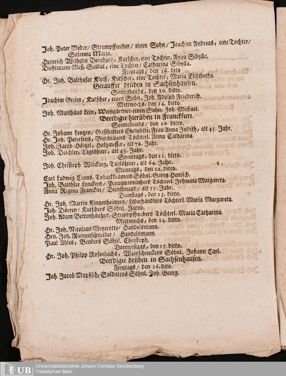 Nachlass Johann Christian Senckenberg