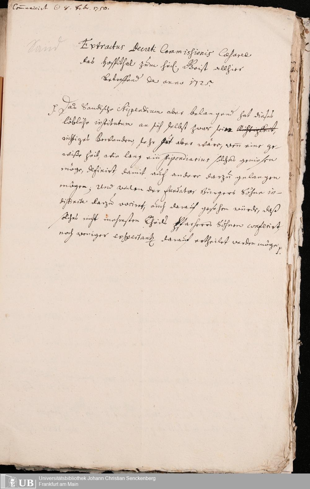 Na 31 Nachlass Johann Christian Senckenberg, 200 - Frankfurtische Vermächtnisse und Stiftungen