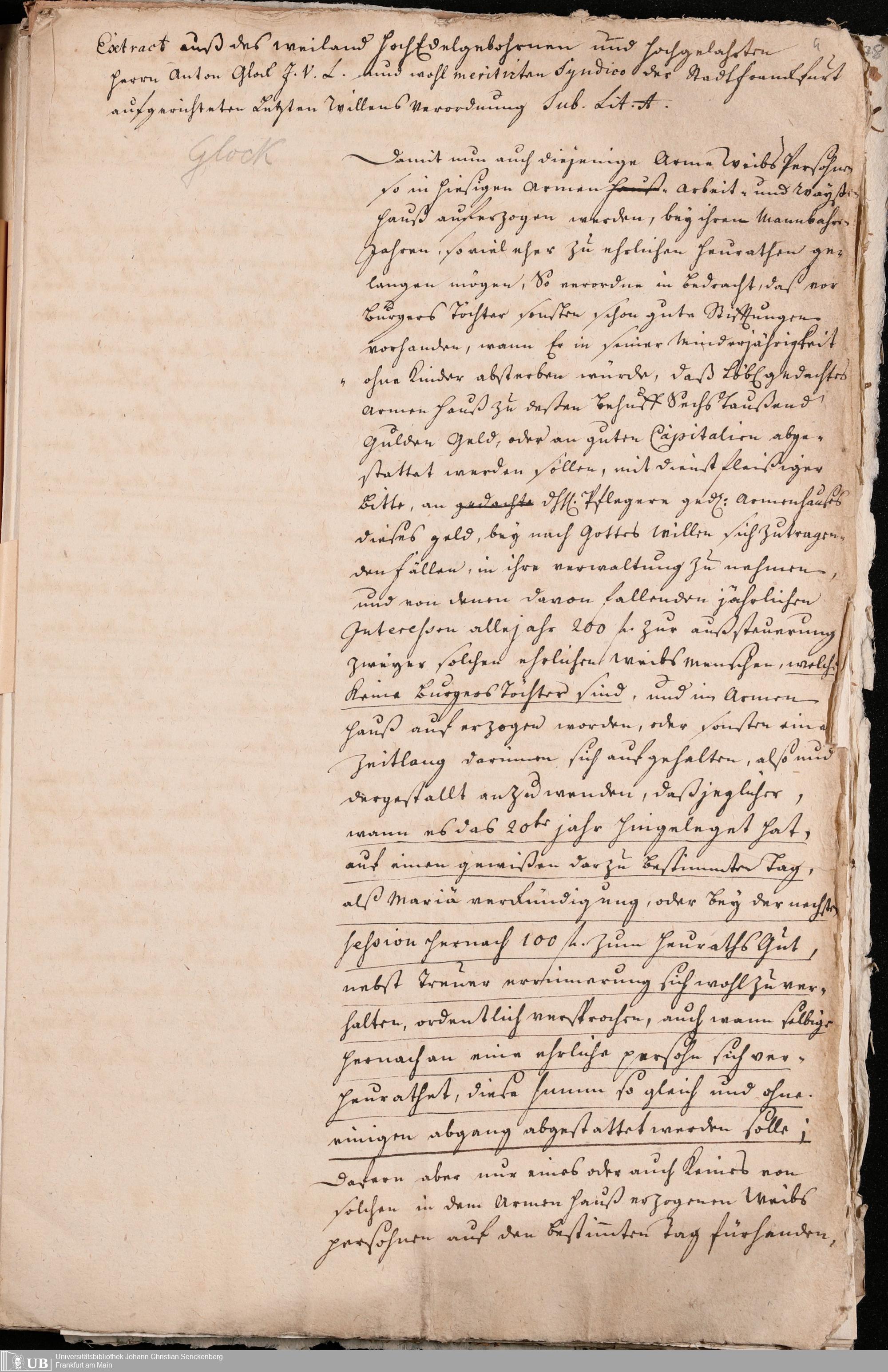 Na 31 Nachlass Johann Christian Senckenberg, 200 - Frankfurtische Vermächtnisse und Stiftungen